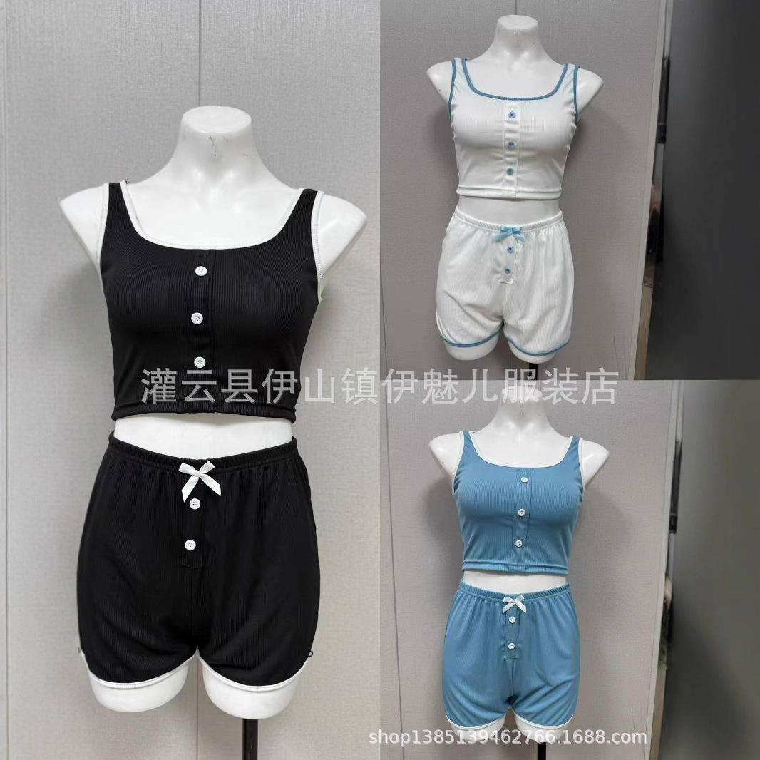 女性用サマーパジャマ、スイートプチベスト、ショーツ、ツーピースカジュアルホームウェア