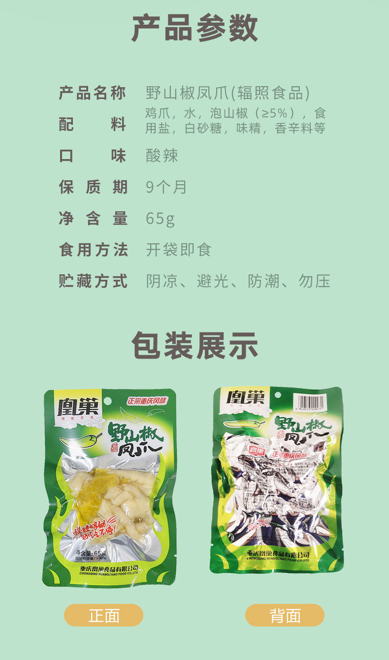 巣野山椒鳳爪商超同型ハロゲン味鶏足夜食夜間食重慶特産65gピーマン鳳爪