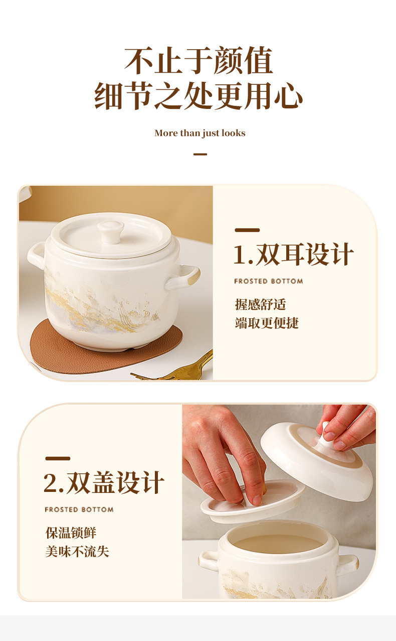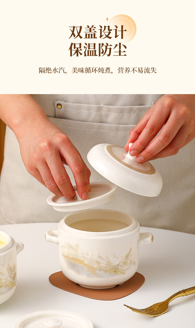 双耳シチュー景徳鎮陶磁器カスタム蓋付き蒸し卵ボウル家庭用隔水シチュー卵スープ燕窩専用