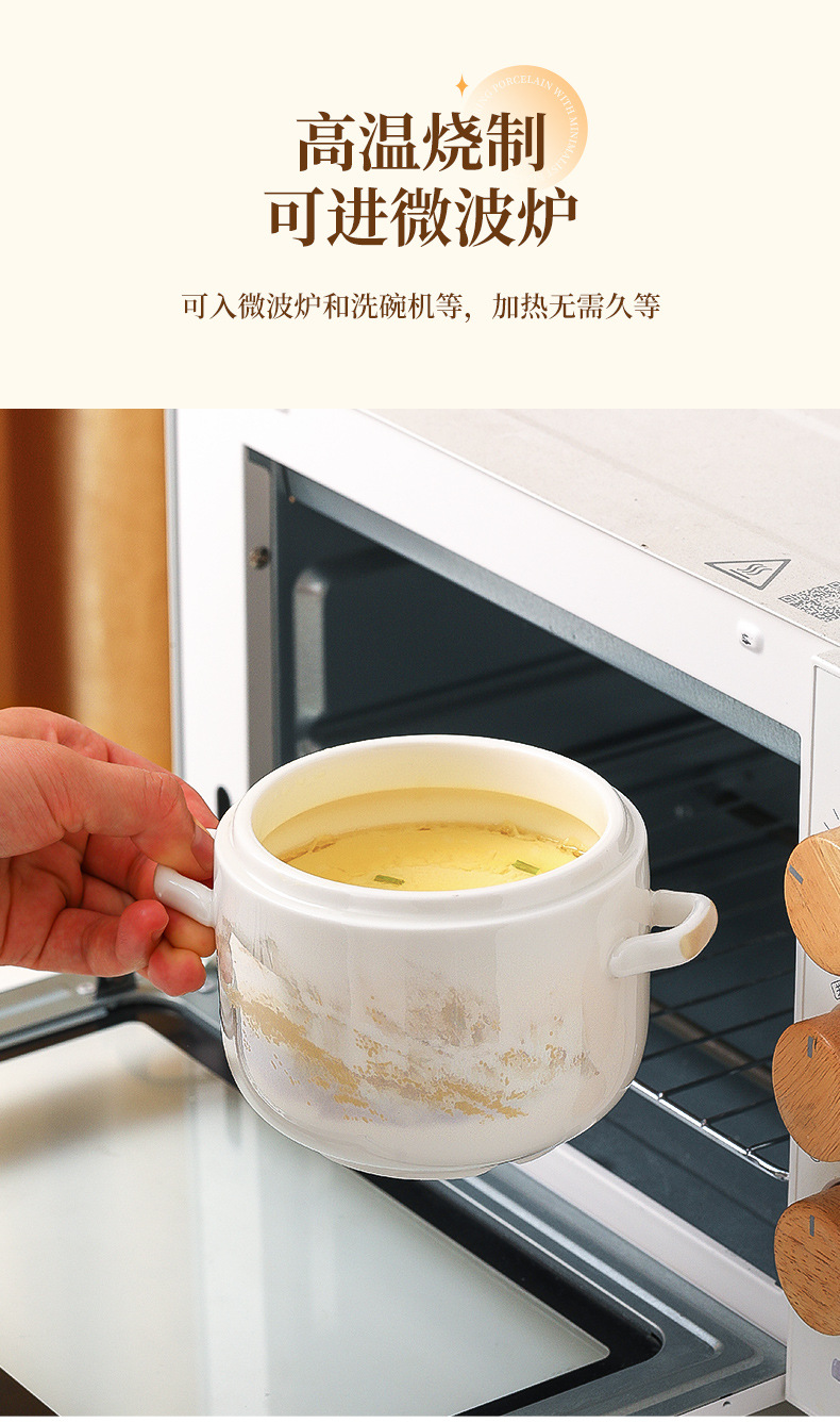 蓋付きセラミック蒸し卵ボウル、両耳ボウル、スフレエアフライヤーベーキングボウル、子供用家庭用シチューカップ、ツバメの巣食器