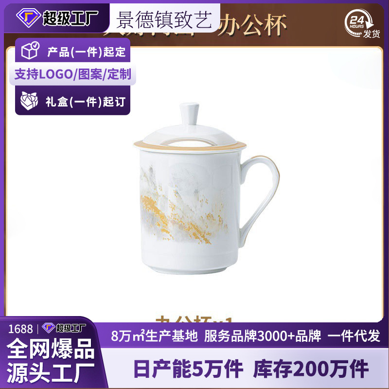 大好河山景徳鎮陶磁器カップカスタムハイエンドオフィス会議陶磁器カップ家庭用高級カッププレゼント