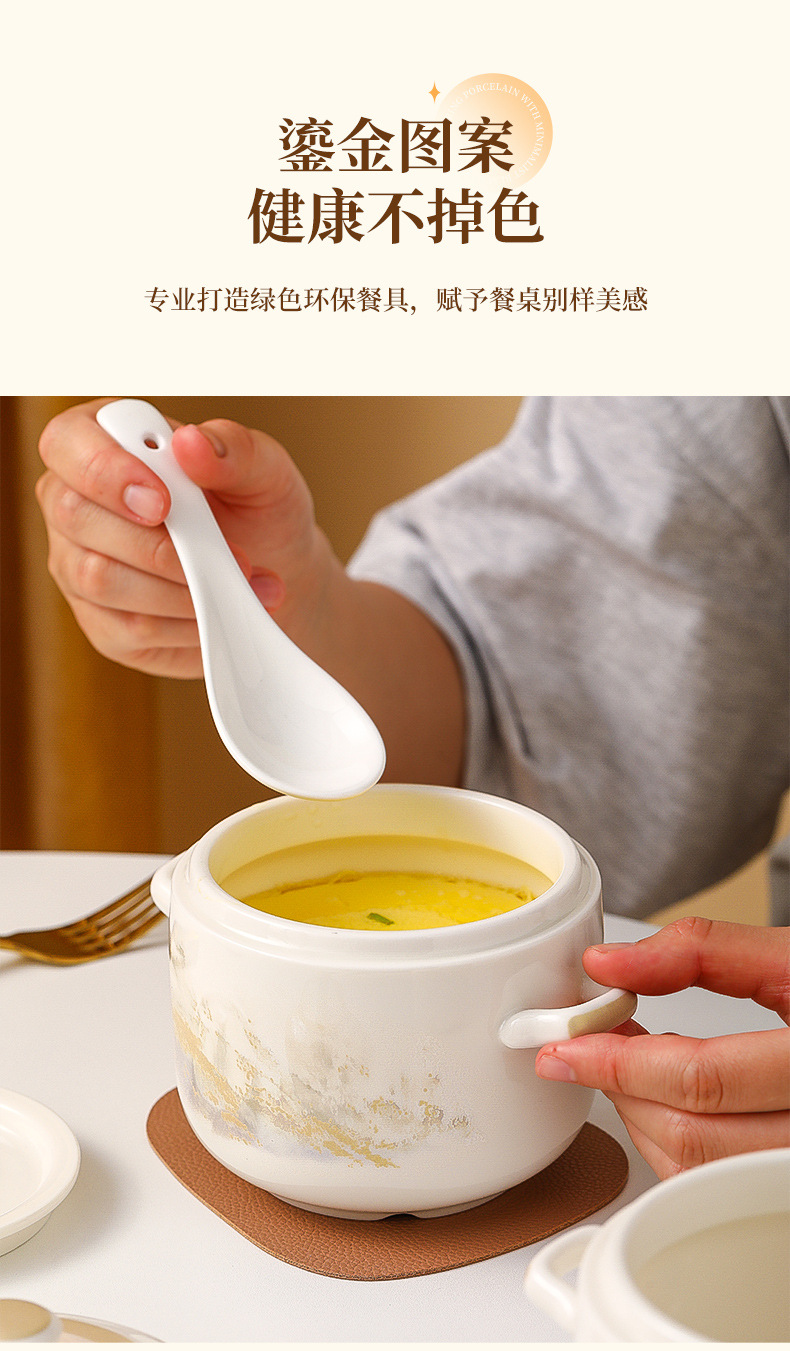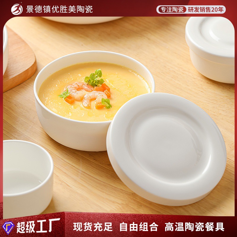 景徳鎮セラミック釉下色食器蒸し卵ボウル家庭用蒸し卵カスタードベビーボウル純白シチューポット