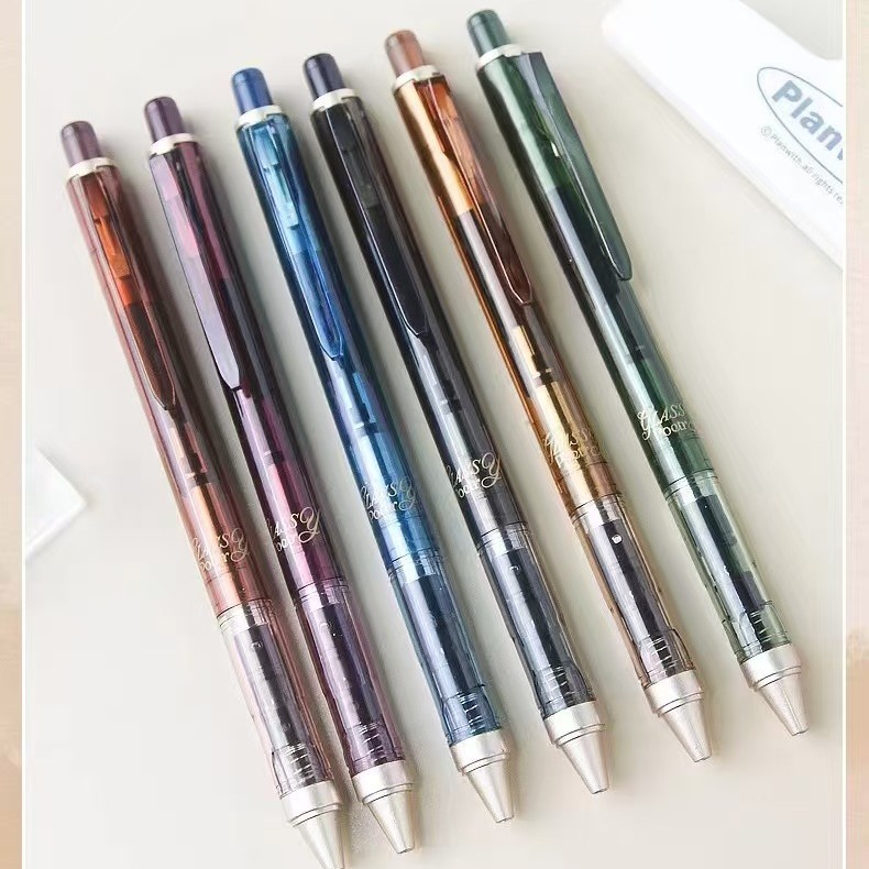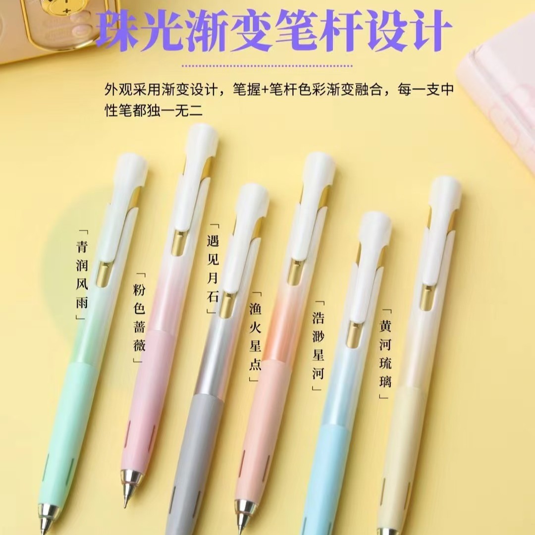 愛加AK2066限定グラデーション珠光中性ペン三角ペン棒フロスト質感大容量ペン芯交換可能