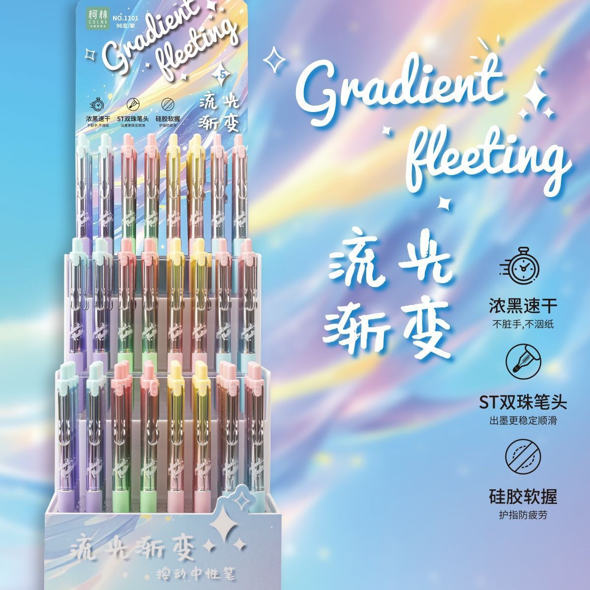 Colin 1101 ストリーマーグラデーションゲルペン黒濃い黒インクシリコーンソフトグリップ ST ヘッドブラシオフィスゲルペン