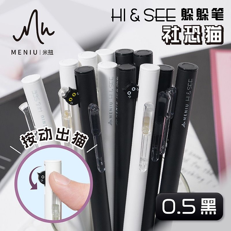米扭社恐猫躲躲中性笔创意刷题学生专用ins高颜值速干中性笔0.5