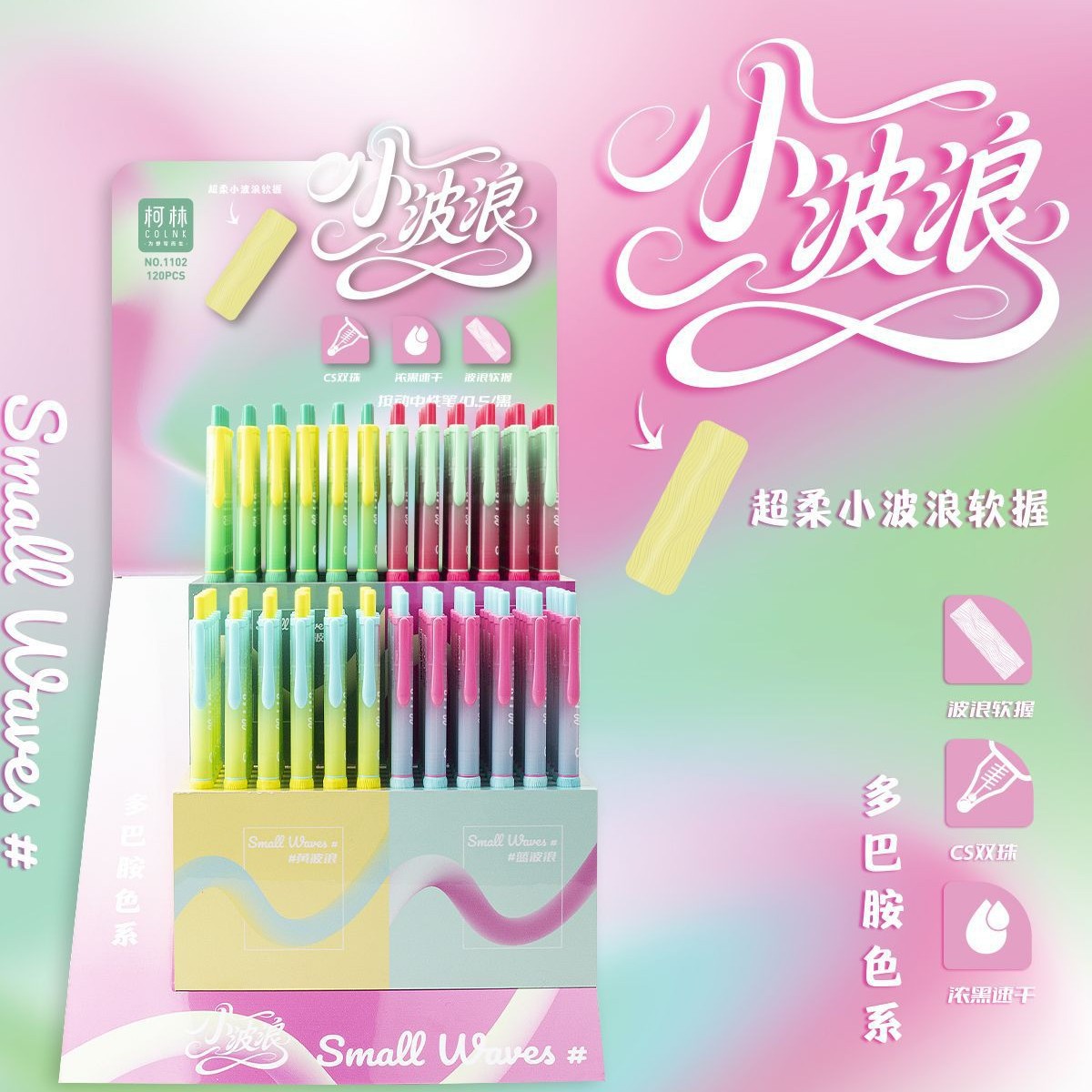 コリン 1102 スモールウェーブプレスゲルペン ブラック ドーパミンカラーウェーブ ソフトグリップ 濃い黒インク CS ダブルビーズ