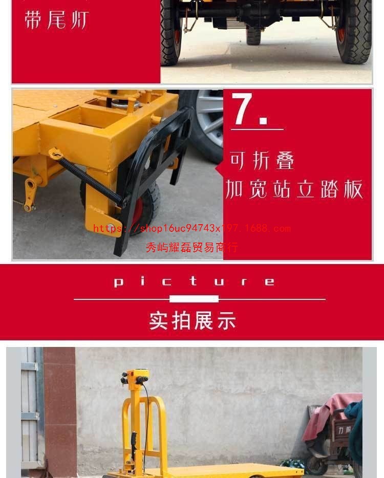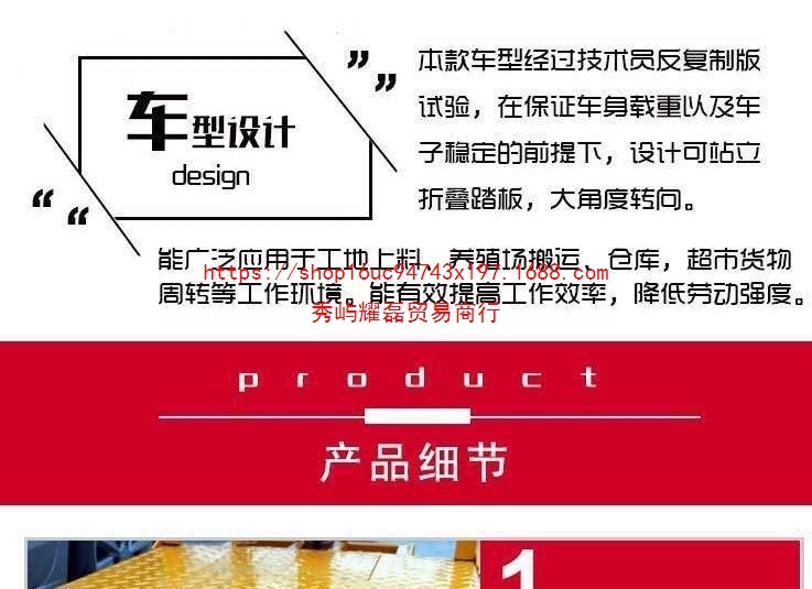 電動手押し台車、レンガ車、建設現場倉庫、物流運搬車、タイル飼料工事車、畜産輸送車