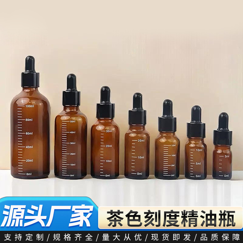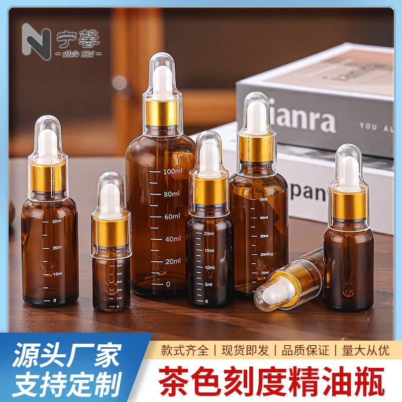 茶色刻度精油瓶深色避光玻璃瓶精华液乳液胶头滴管分装瓶工厂直发