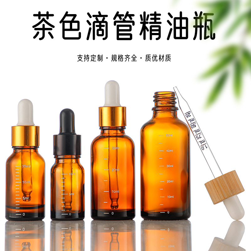 5mlスケールエッセンシャルオイルボトル茶色スケールスポイト10ml分注ボトル化粧品エッセンス20mlガラス瓶