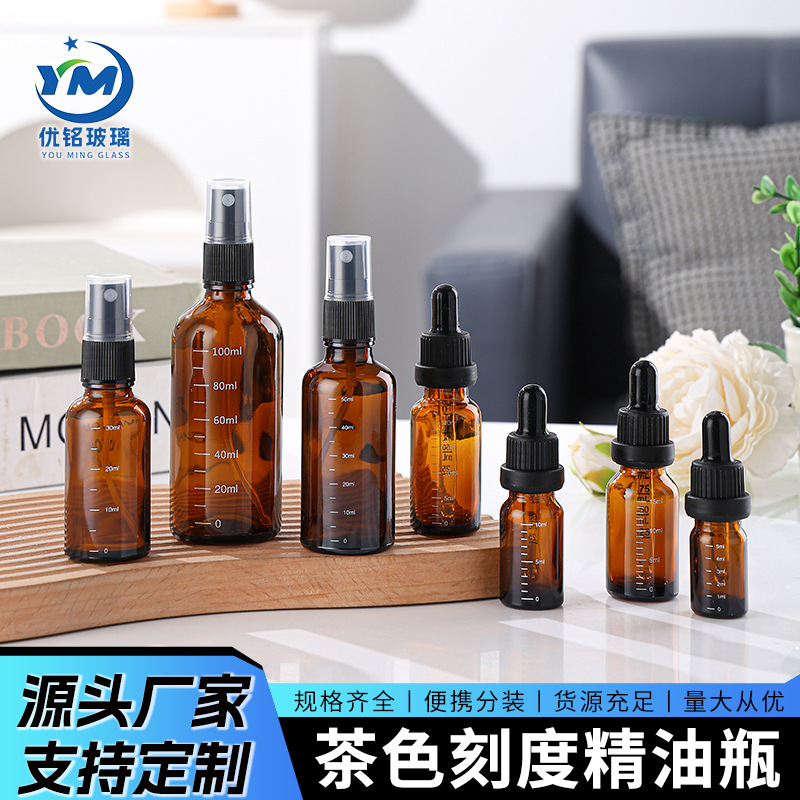 5ml带刻度精油瓶茶色刻度滴管10ml分装瓶化妆品精华液20ml玻璃瓶
