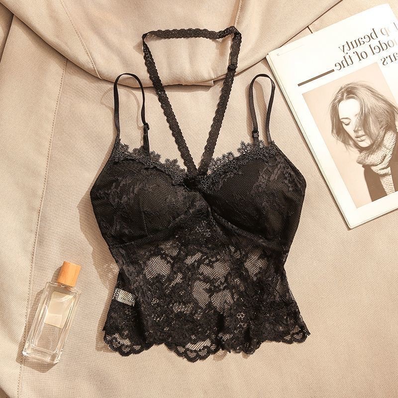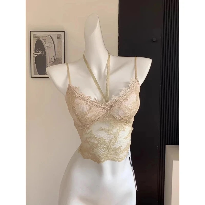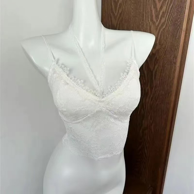 ホルターネックレースインナーサスペンダー、胸パッド付き、外でも着用可能、夏用フレンチピュアディザイアボトム、女性用万能ベスト