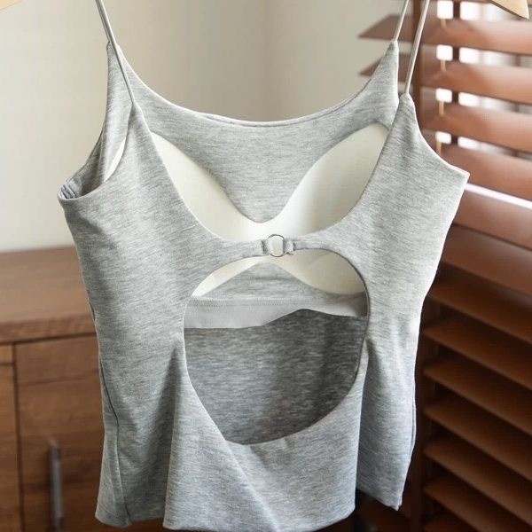 后背镂空小吊带背心女外穿夏内搭带胸垫美背文胸一体打底露背上衣