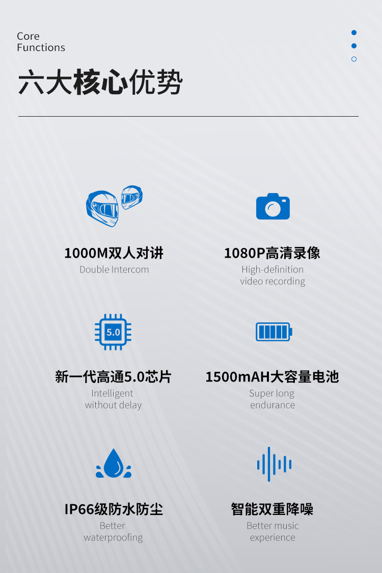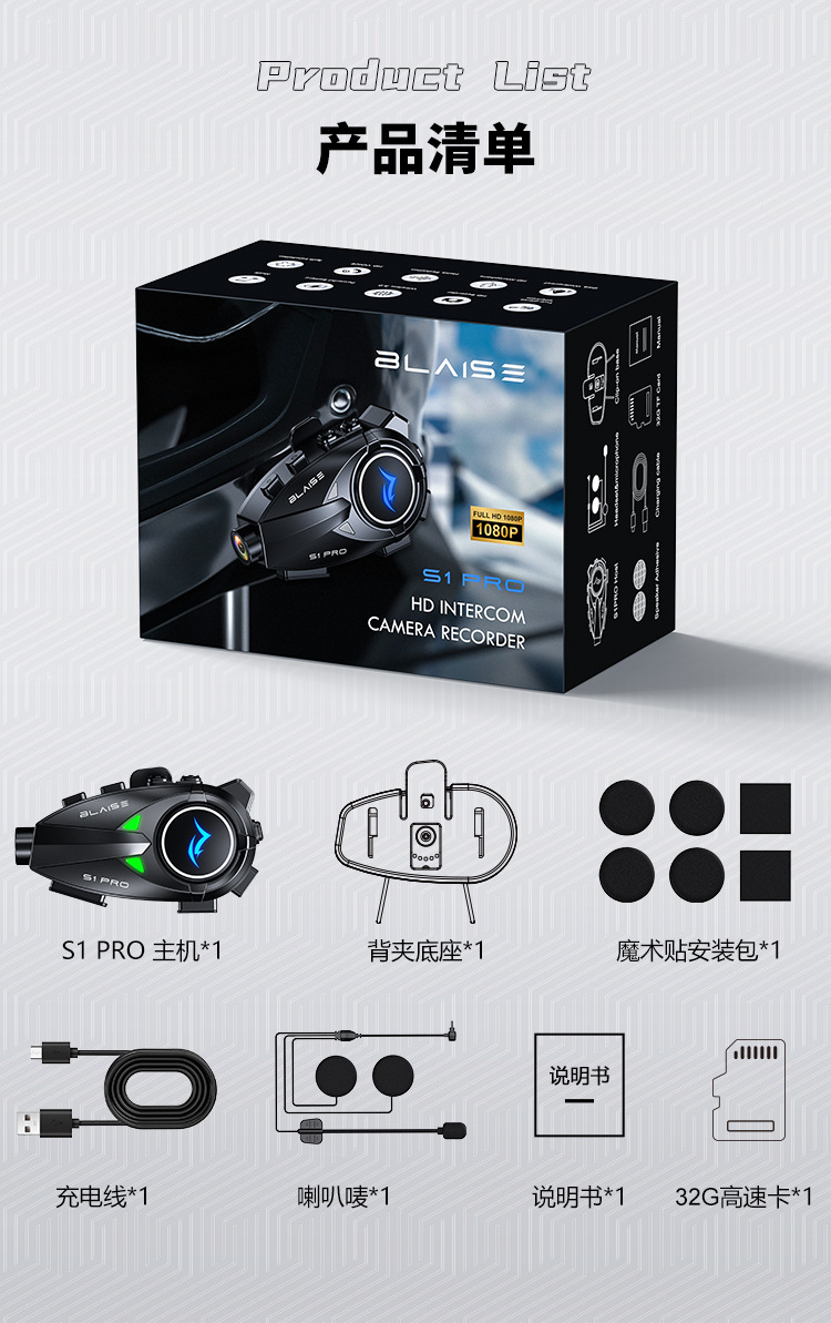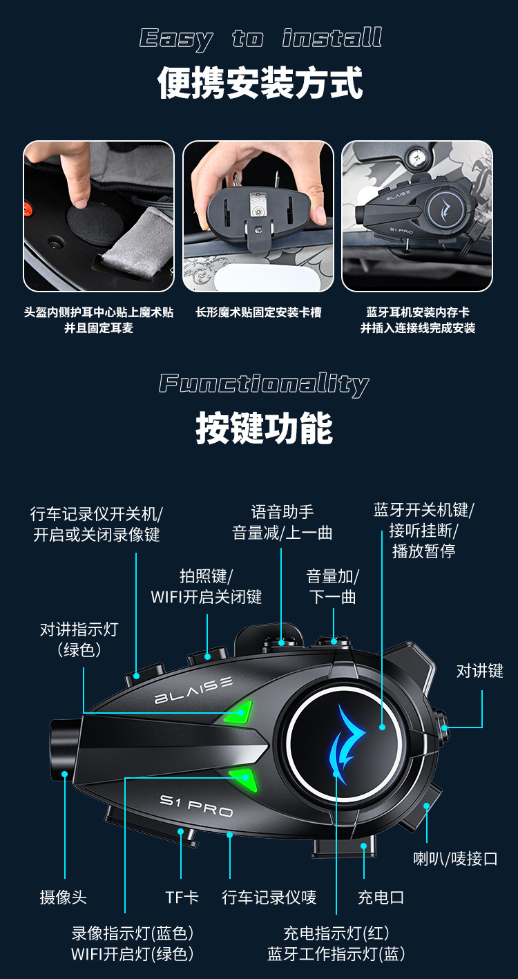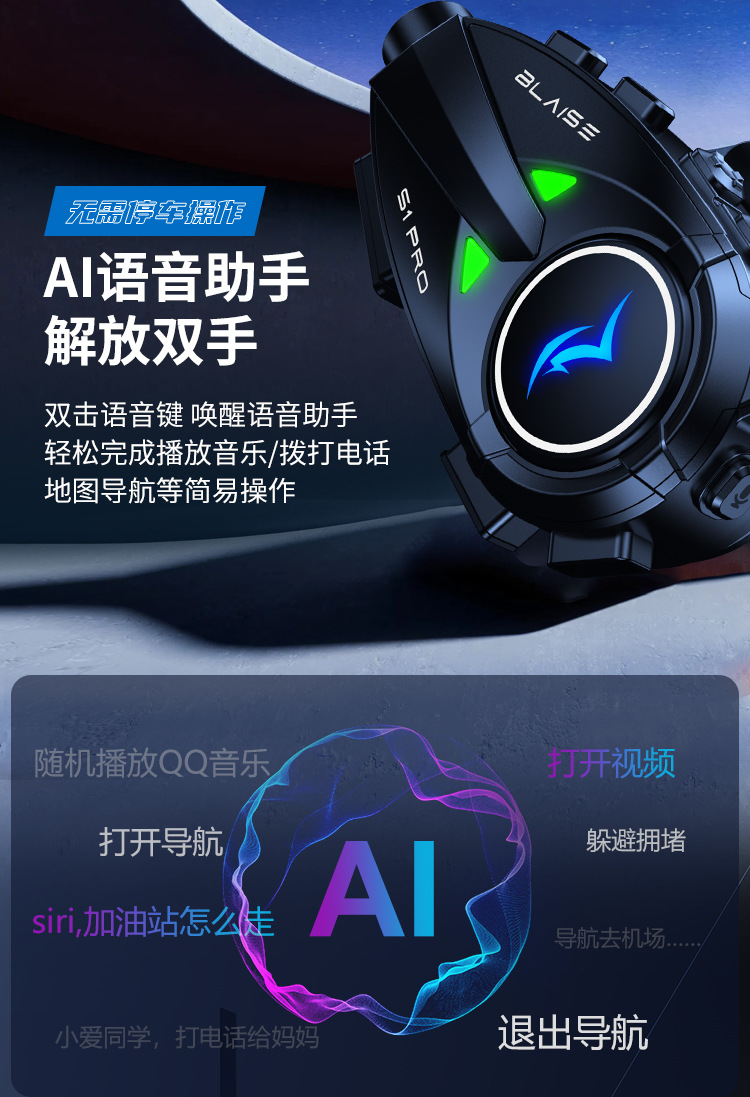 BLAISE V8Sスマート音声AIヘルメットbluetoothイヤホン内蔵防水ノイズ除去全ヘルメット軟麦硬麦スパン