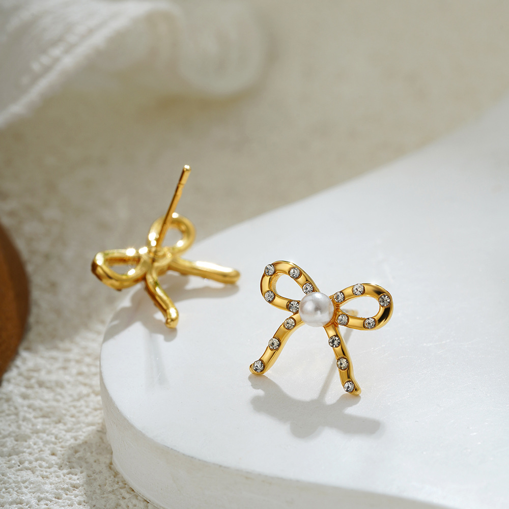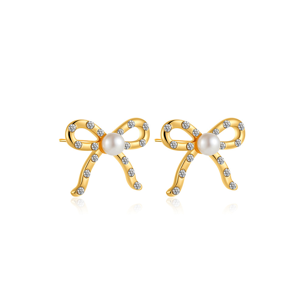 欧米のクロスボーダー18kゴールドパールにダイヤモンドのイヤリングを入れています。