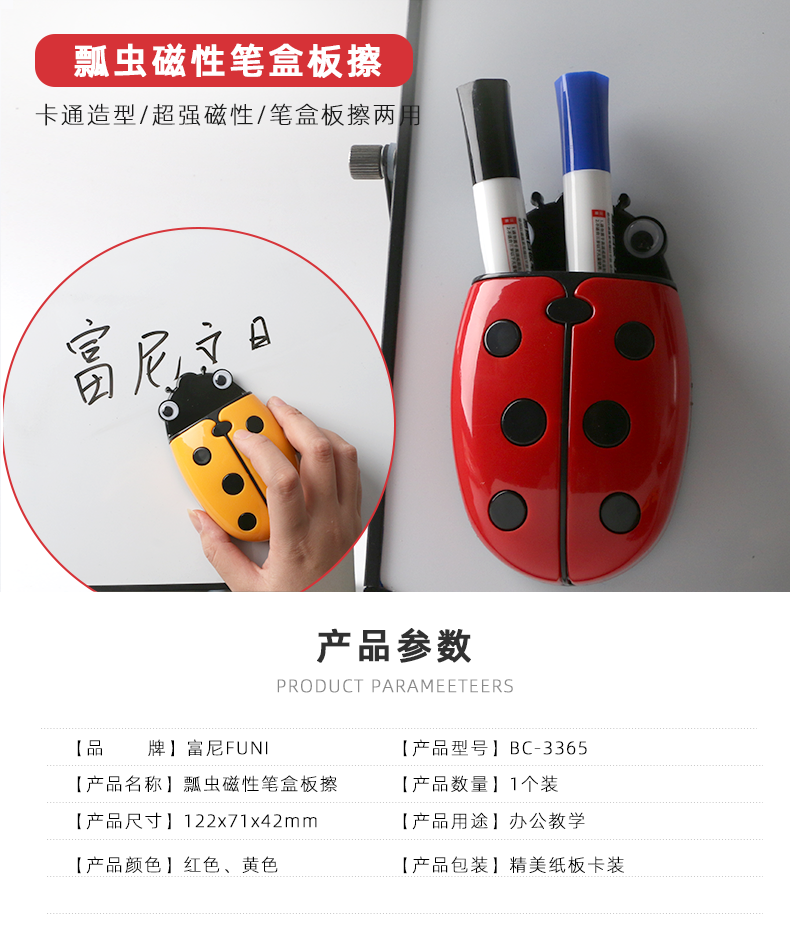 ホーム装飾漫画テントウムシ磁気筆筒筆箱板拭き両用白板拭き磁気白板筆筒幼児