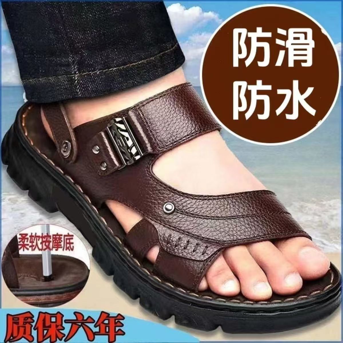 サンダル男性模造牛革靴夏 2025 滑り止め防水アウターウェアメンズ男性デュアルユースアップグレードバージョン
