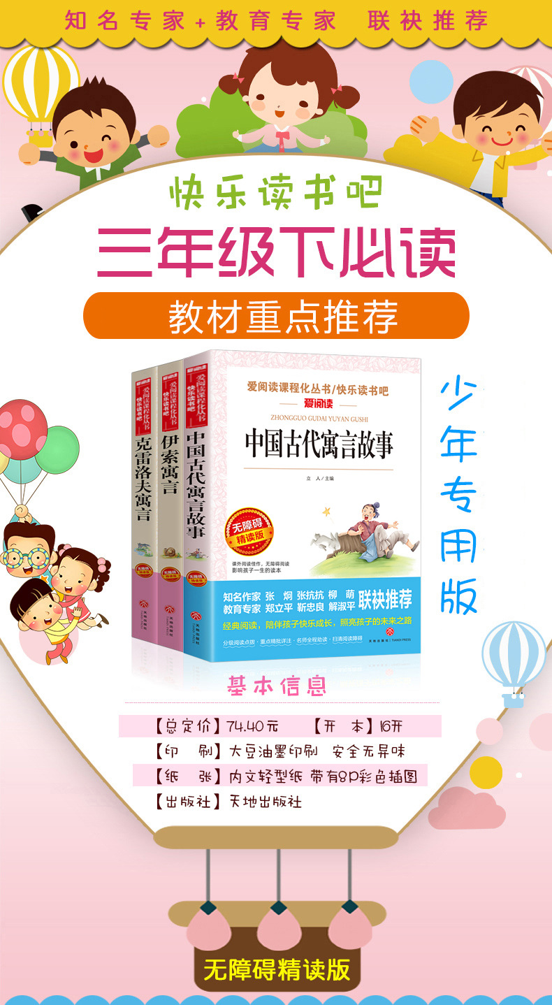楽しく本を読みましょう。中国古代寓話物語伊索寓話三年生の下巻は必ず正規版の課外書を読みます。