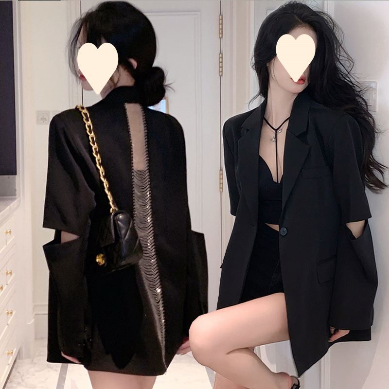 太ったMMの大きいサイズの300斤の背中の透かし彫りのチェーンのスーツのコートの女性の春の感の郭の形のゆったりしている上着2