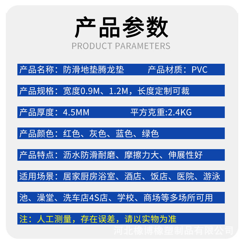 1、适用场景广泛:腾龙防滑垫可用于浴室、泳池、餐厅、酒店等多种场所。其具有良好的防水、防滑性能,在潮湿的环境中能有效防止人们滑倒,保障使用者的安全。例如在浴室中,人们洗完澡后地面湿滑,铺上腾龙防滑垫可以大大降低滑倒的风险;在泳池周围,也能起到很好的防滑作用,方便人们行走。