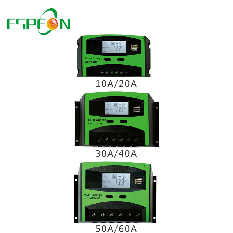 10a-60a 12v/24v ledスクリーン付きダブルusbソーラーコントローラソーラー制御システム