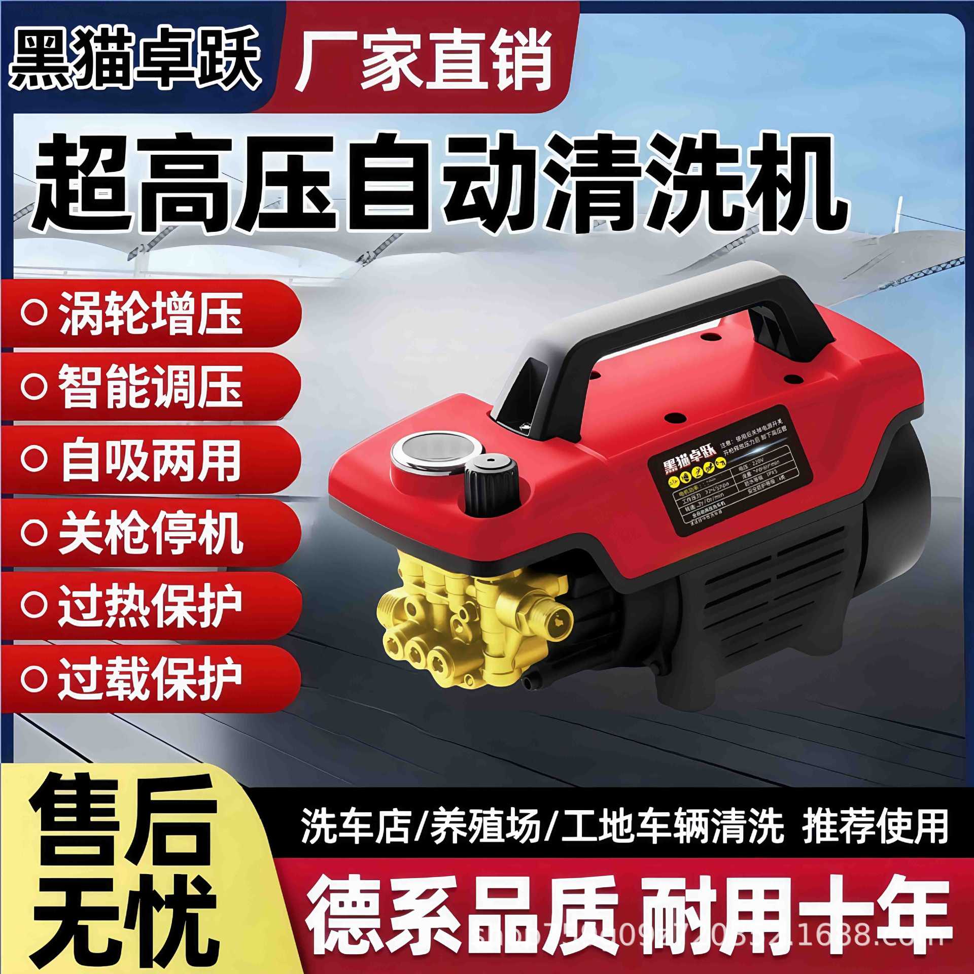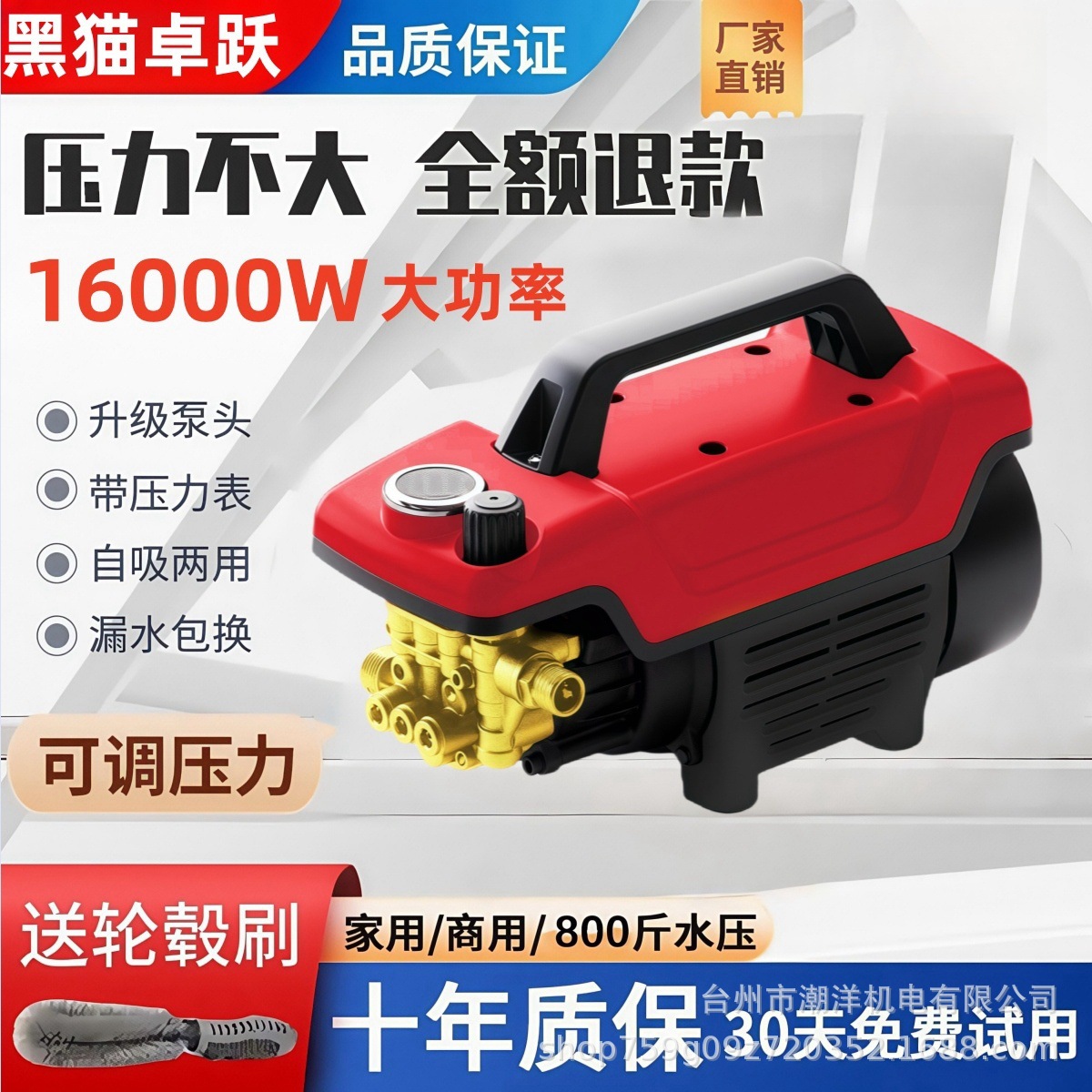 黒猫高圧洗車機家庭用220vハイパワー洗車神器携帯型ブラシポンプ高圧洗浄機