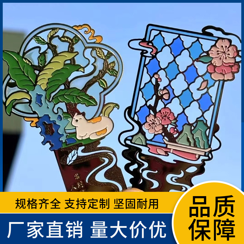 新商品創意透光ブックマーク金属透明漆ブックマーク文創記念プレゼント金属透かしガラス漆