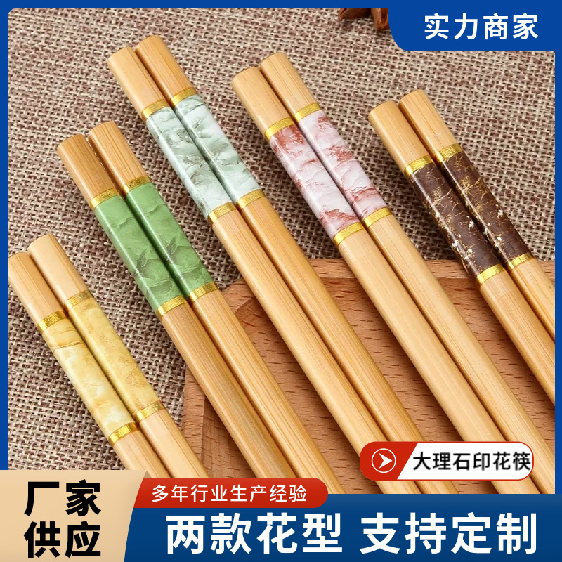 全プラットフォーム代発大理石プリント箸防かび滑り止め天然楠竹箸家庭用竹箸五色家庭用箸
