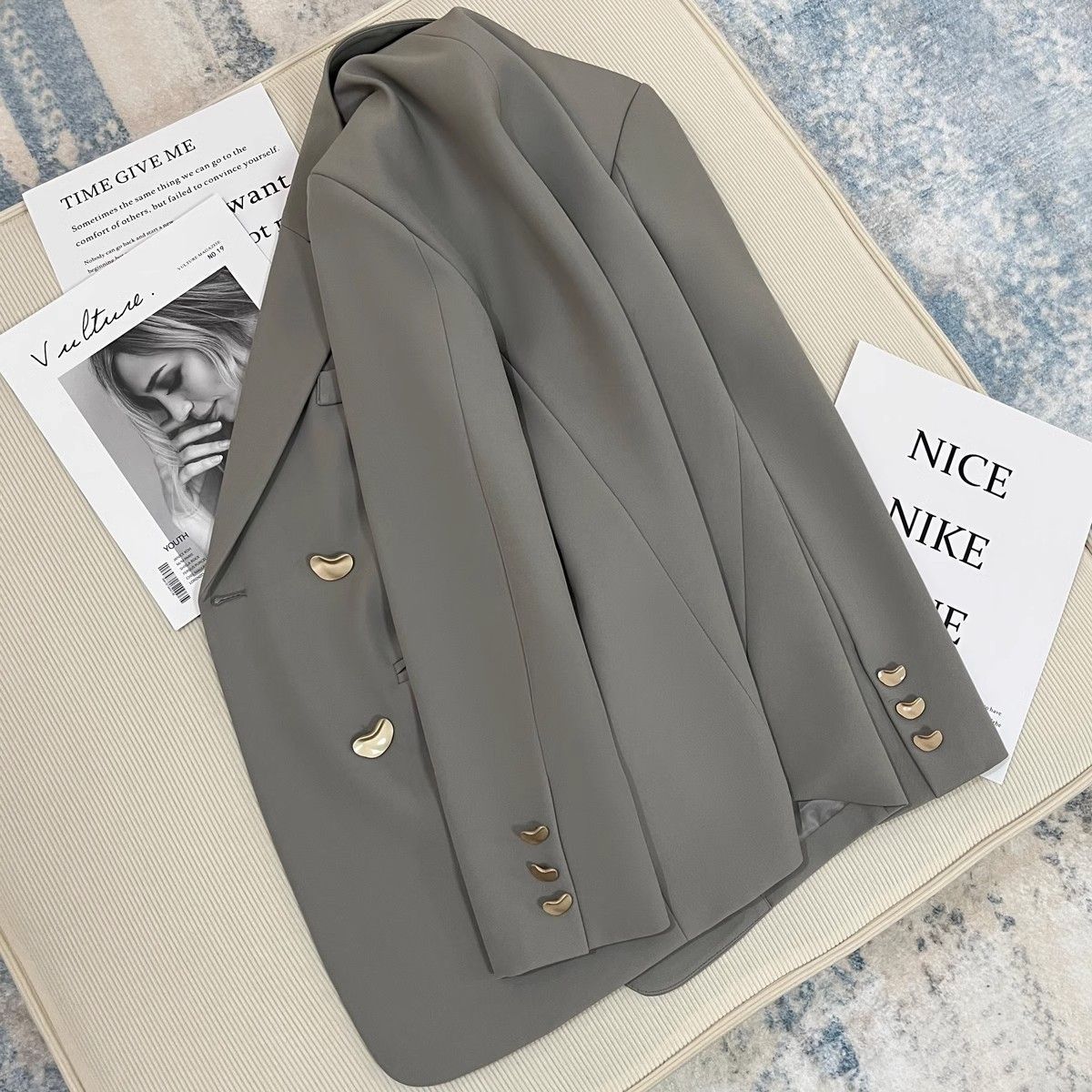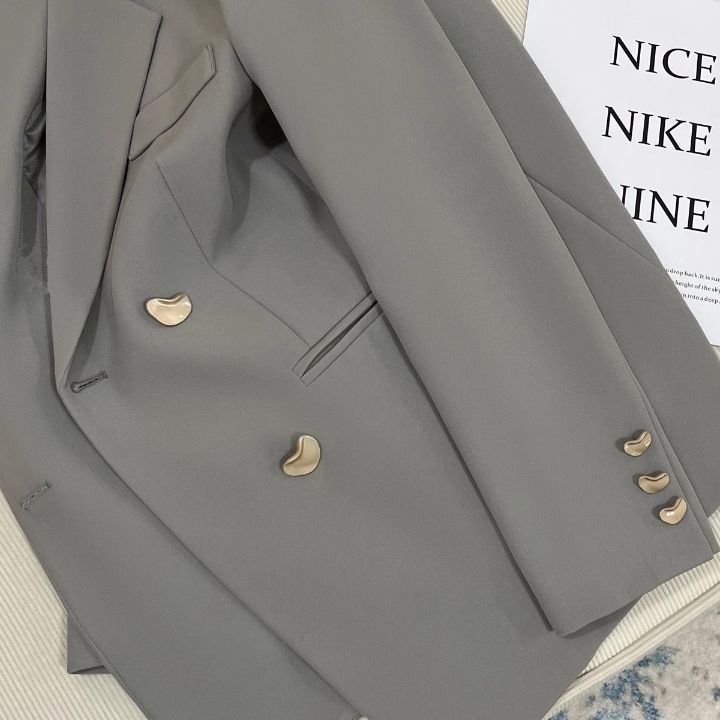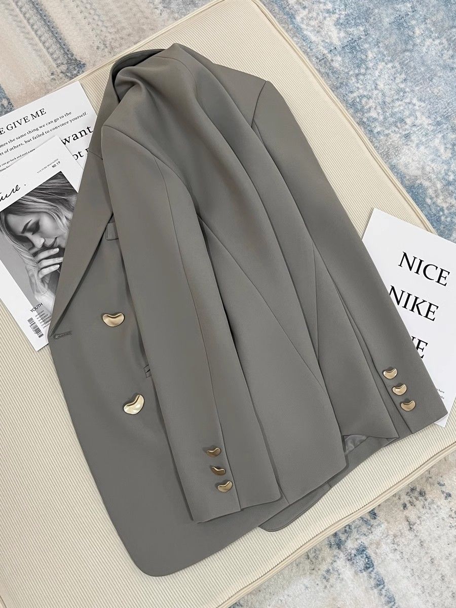 2025秋冬新款米灰色金属扣小西装外套女高级感英伦风百搭西服