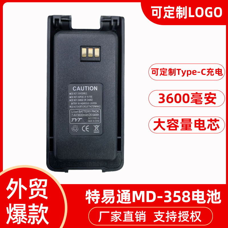 特易通MD-UV390無線機バッテリー MD358 TYPE-C充電ポート付き 大容量3600mAh