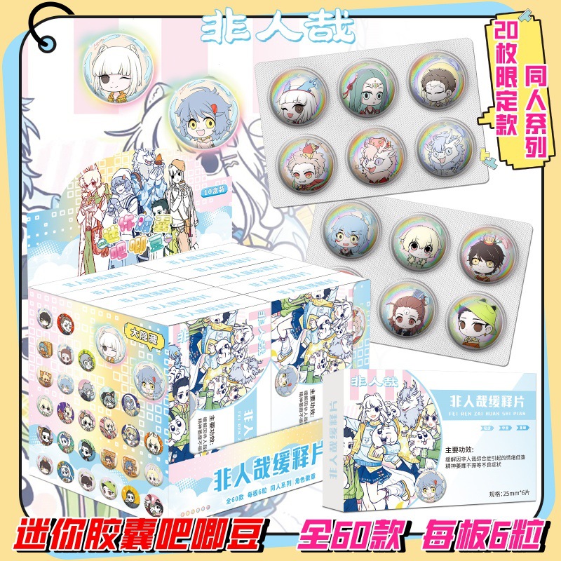 新商品のアニメのダブルフラッシュのバッジはブラインドで75mmのブリキの二次元シリーズのブローチの10個のバッジを引き出します。