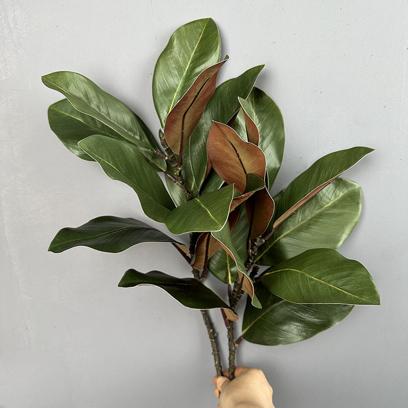 高品質シミュレーション緑植玉蘭葉枝結婚祝い生け花家庭装飾は新型手触り3頭玉蘭葉を置く