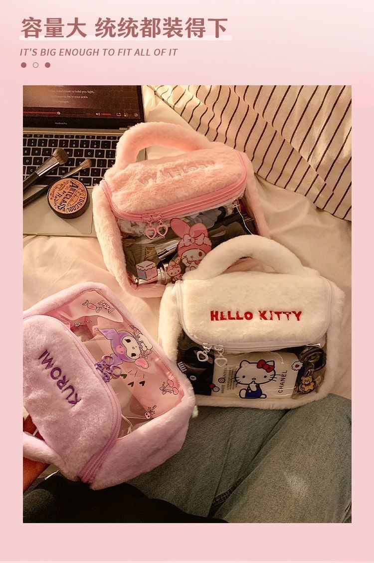 三丽鸥卡通时尚毛绒化妆包可爱大容量高颜值高级感手提收纳包