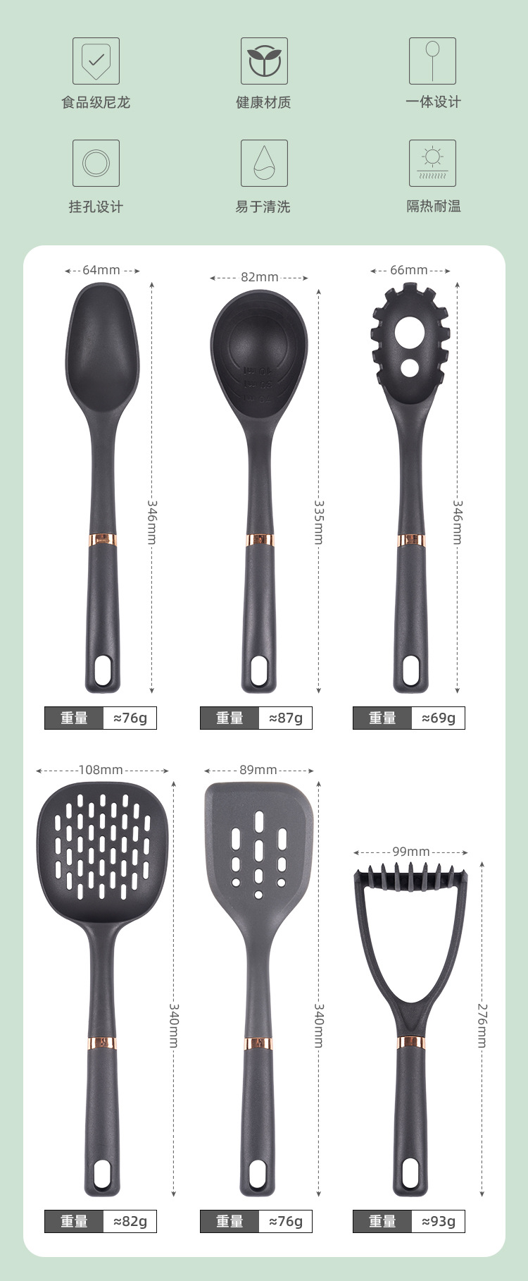 現物メーカーが国境を越えて熱売している6点セットのシャベルスプーンキッチンナイロン調理器具は鍋料理シャベルスプーンセットにくっつかない