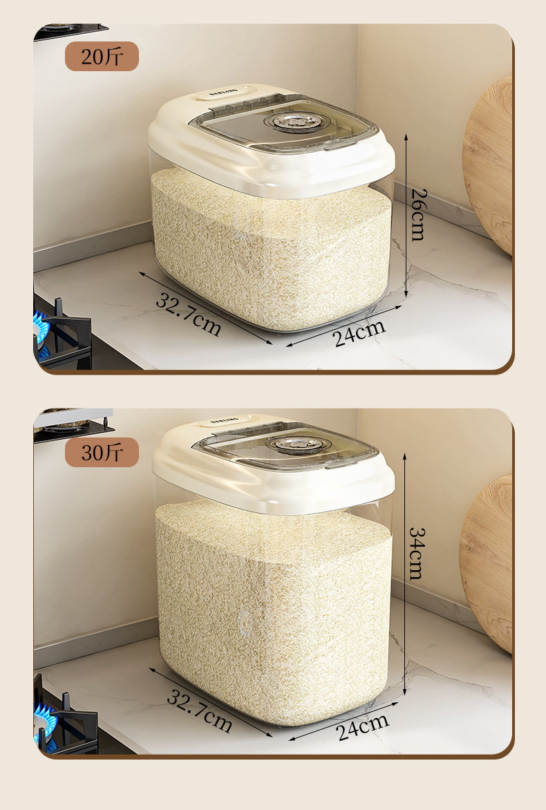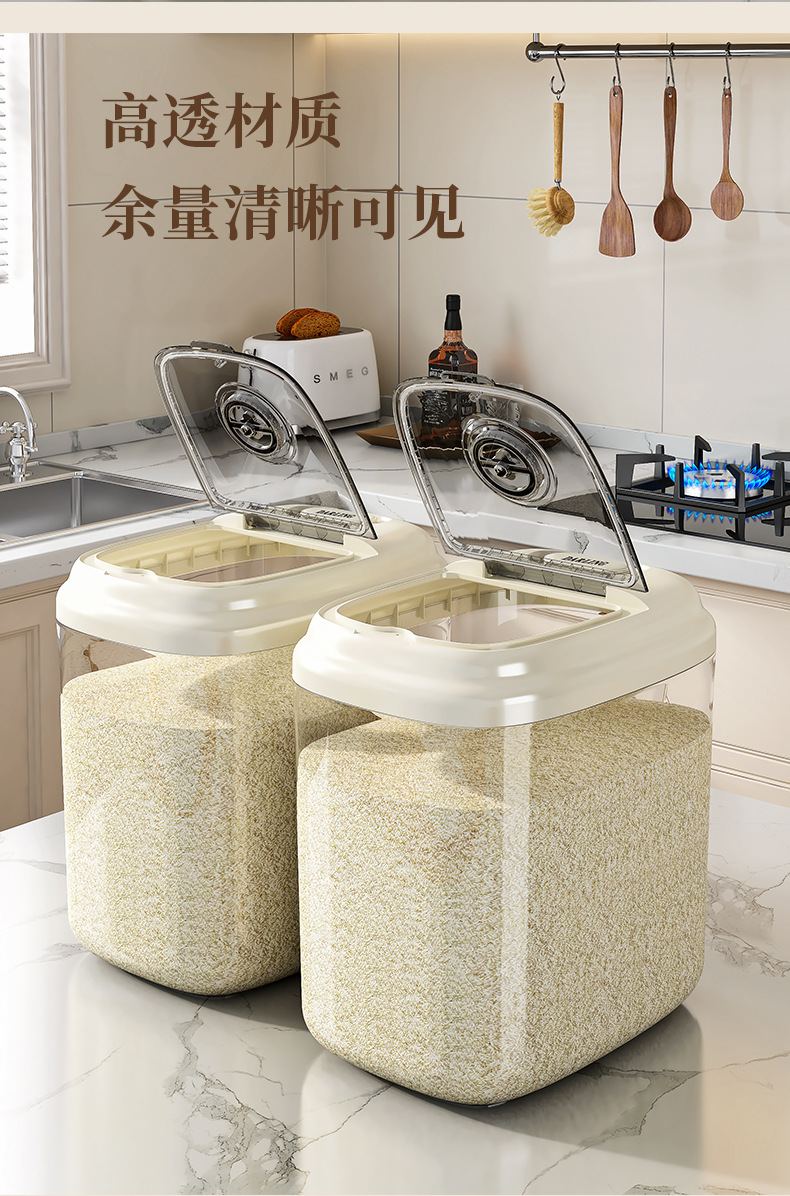 密封米桶30斤入り家庭用防湿防虫透明貯蔵米桶キッチン小麦粉桶米箱収納ケース
