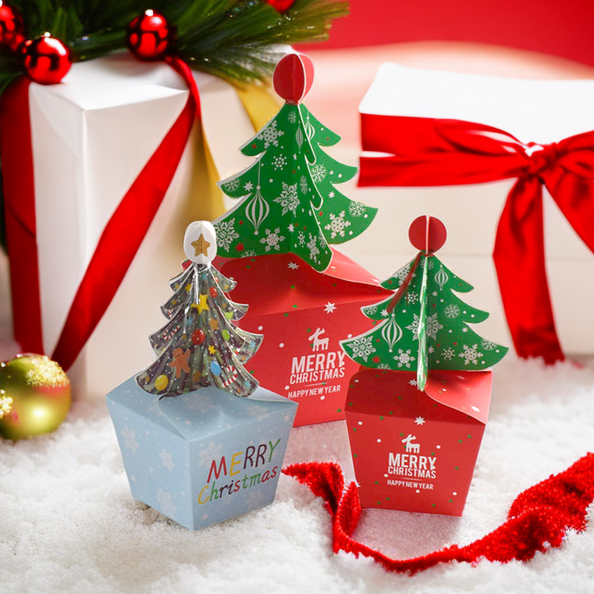 新しいかわいい赤いクリスマスツリーの形のキャンディーの贈り物の包装箱の現物のカラーのクリスマスイブの小さい贈り物の箱
