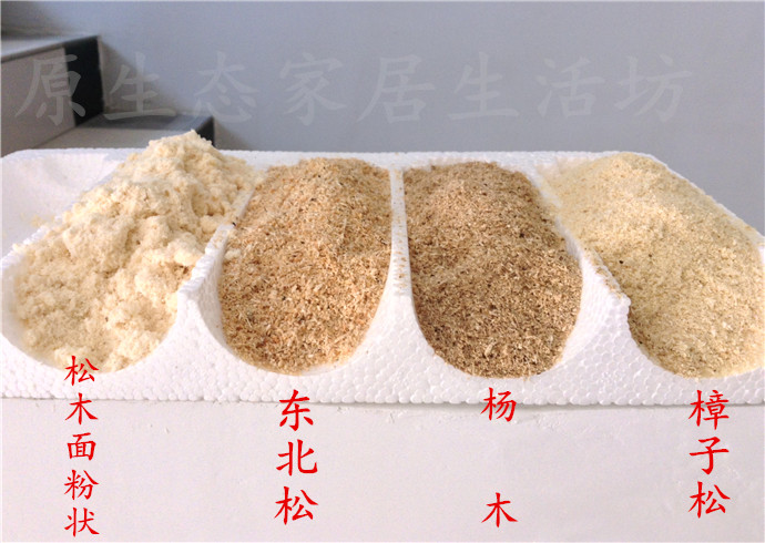 木工师傅开料时刨下,种类有樟子松、杨木、东北松、松木纯面粉状,100%实木,健康无毒