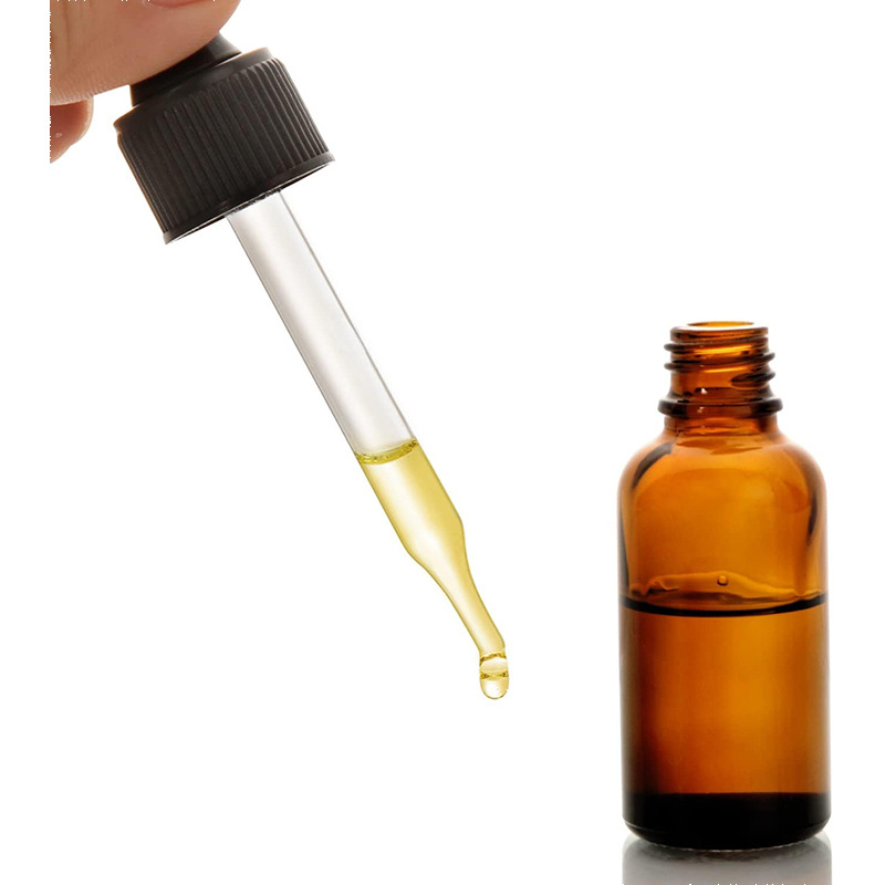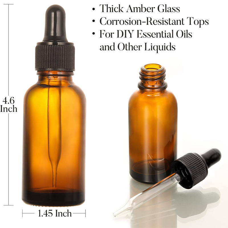 30mlエッセンシャルオイルボトル、小さな空ボトル包装、高級茶色遮光ガラスプレススポイトボトル、エッセンスボトル