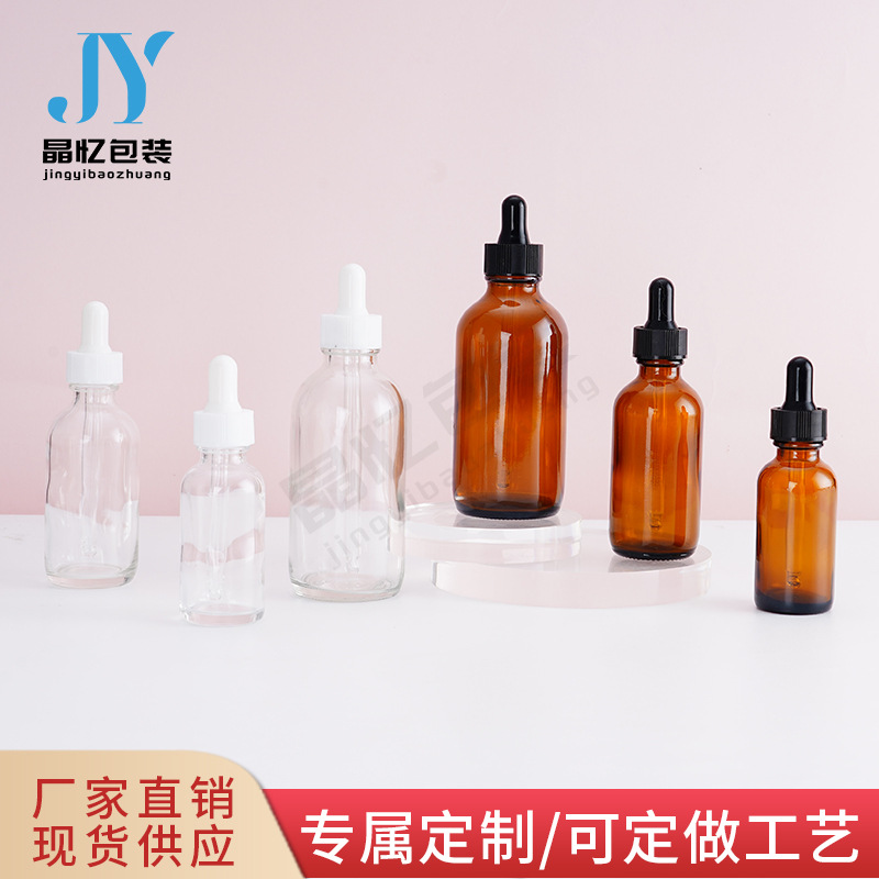 クロスボーダー茶色ボストンボトル15ml 30ml 60mlエッセンシャルオイルスポイト瓶透明スキンケア製品分注瓶ガラス
