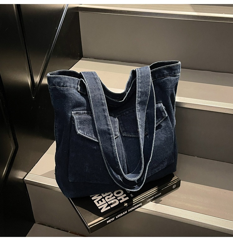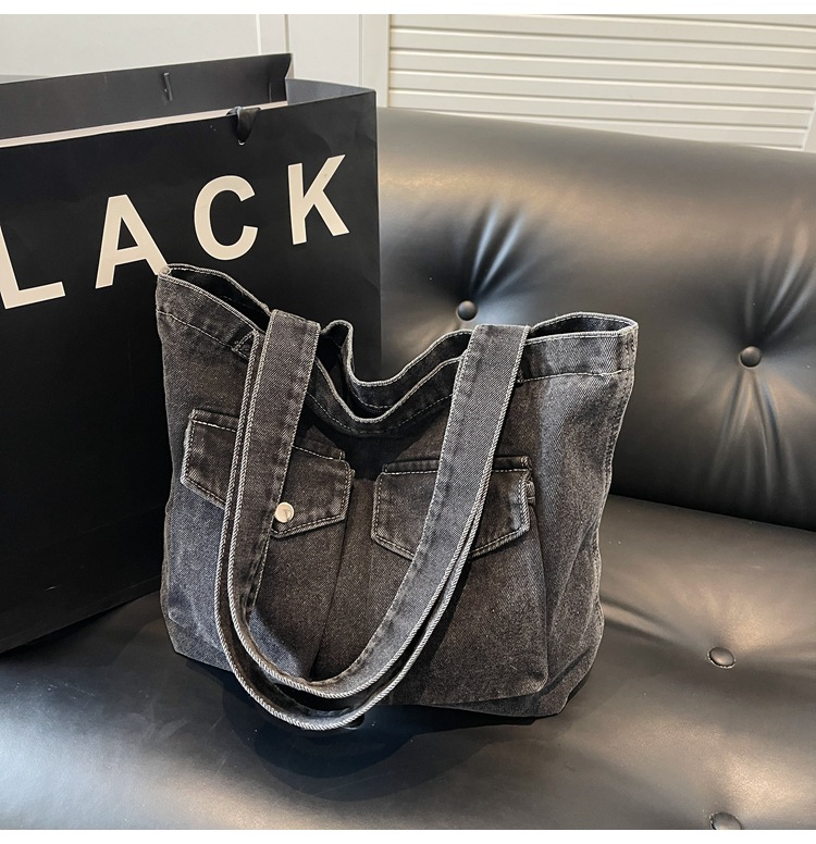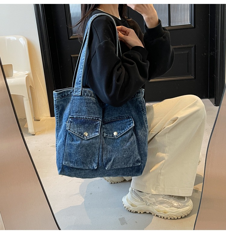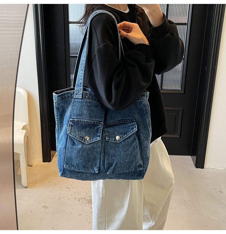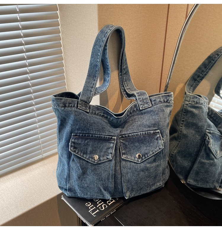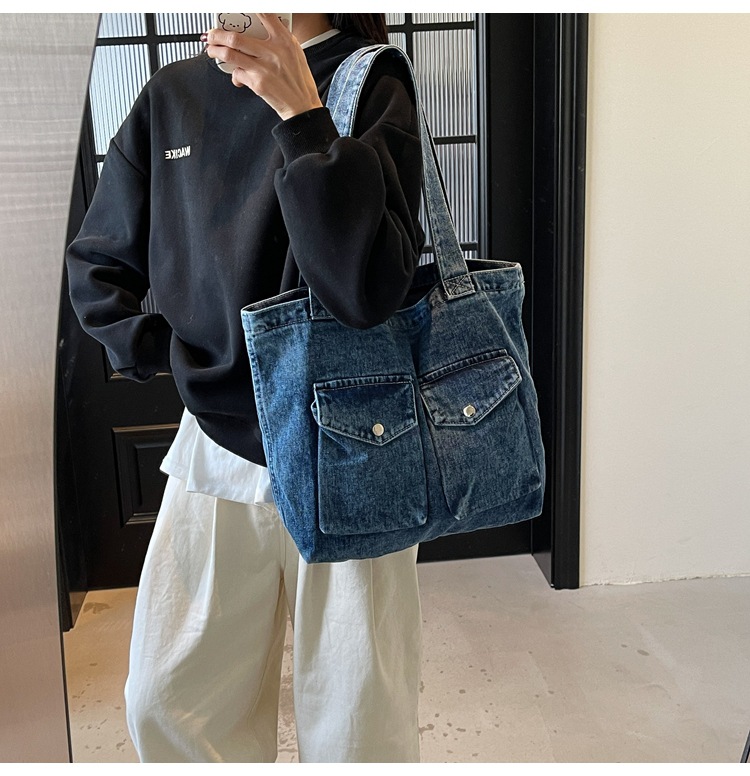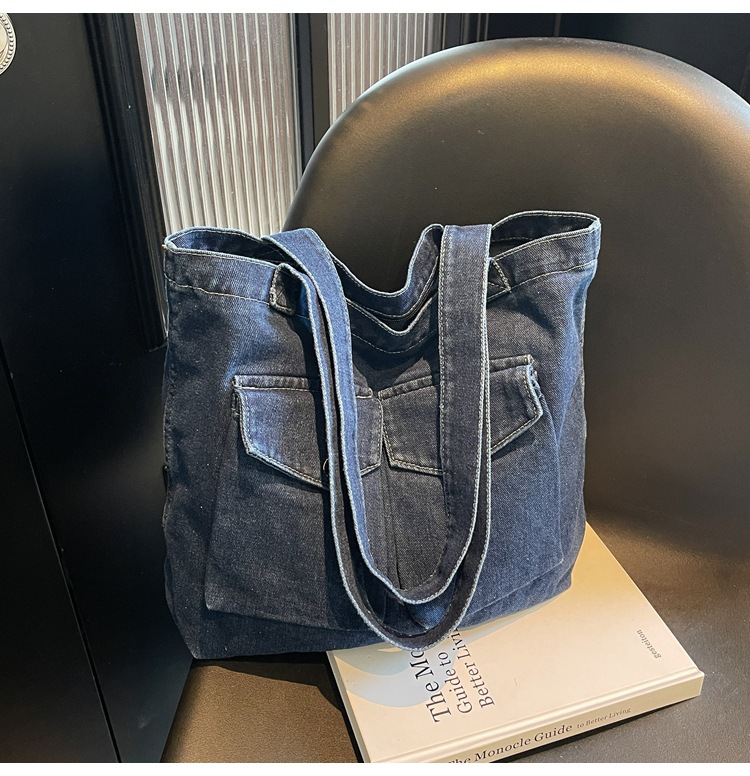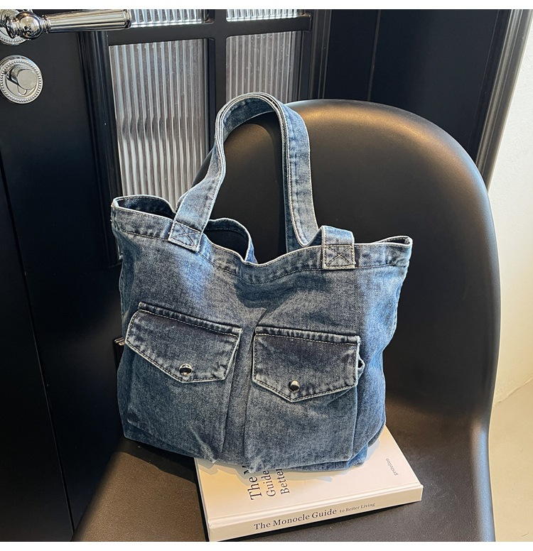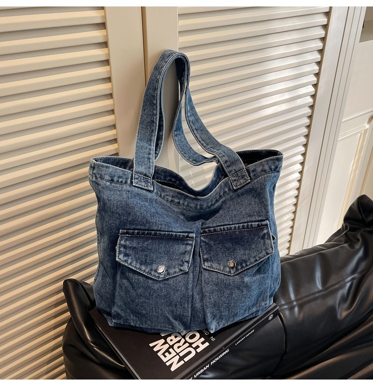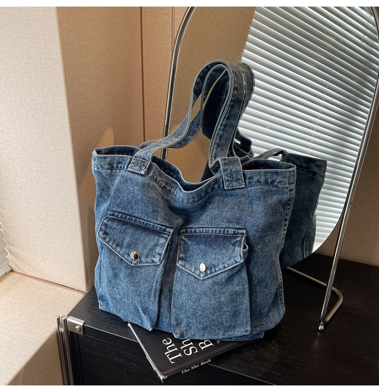 国境を越えた対外貿易大容量復古通勤シングル肩脇下ハンディデニムのトートバッグ2025新型卸売り