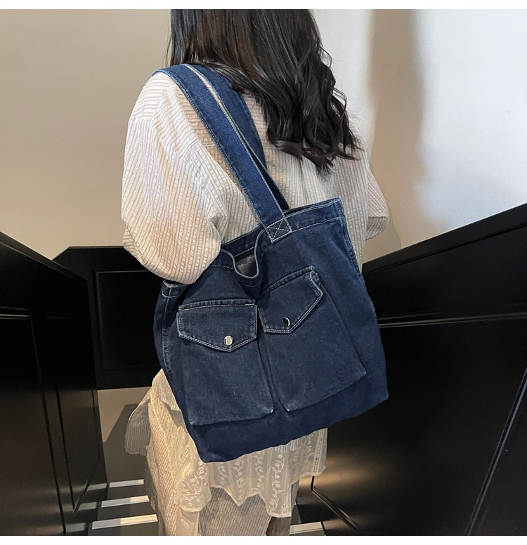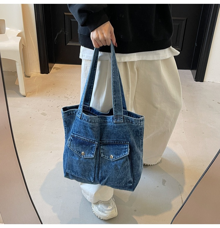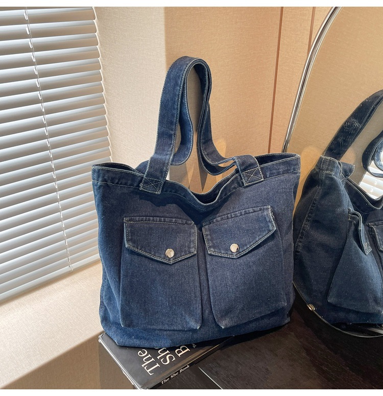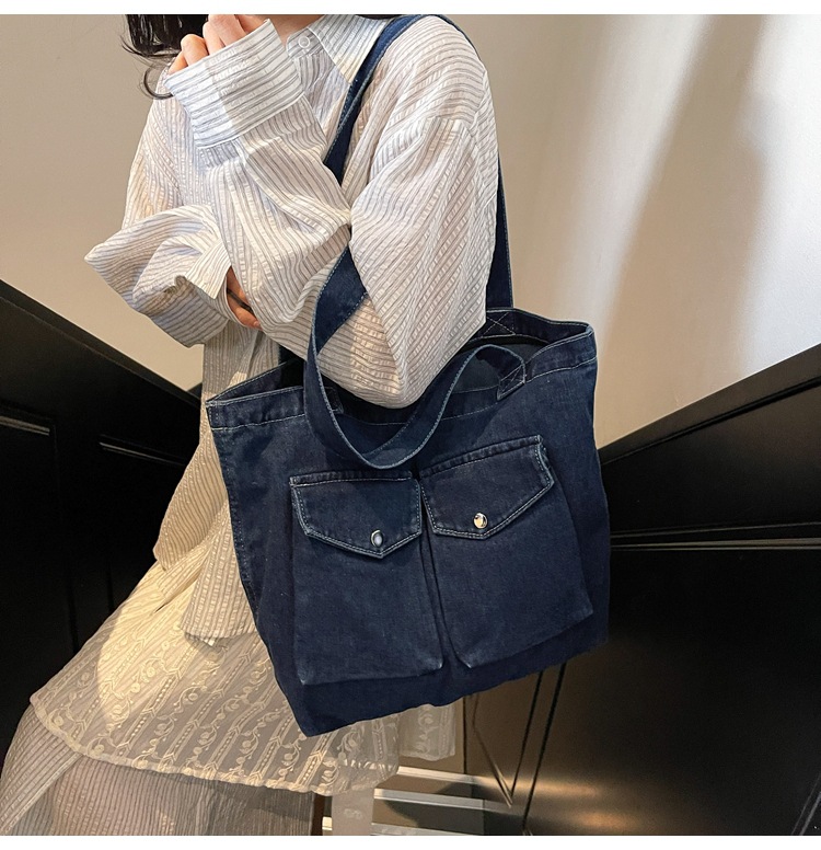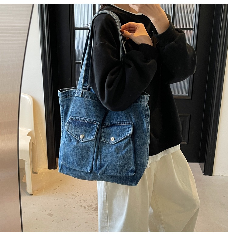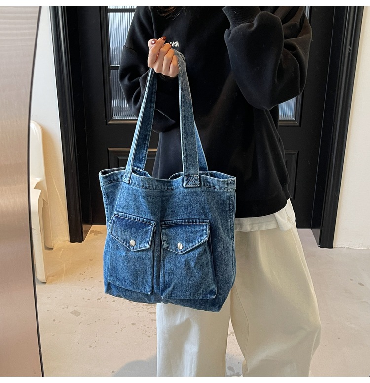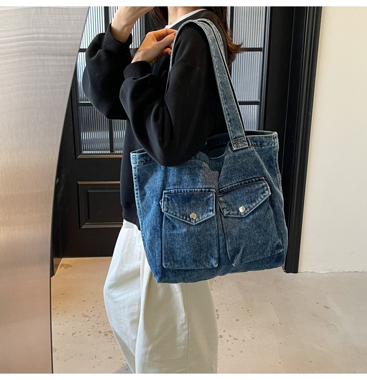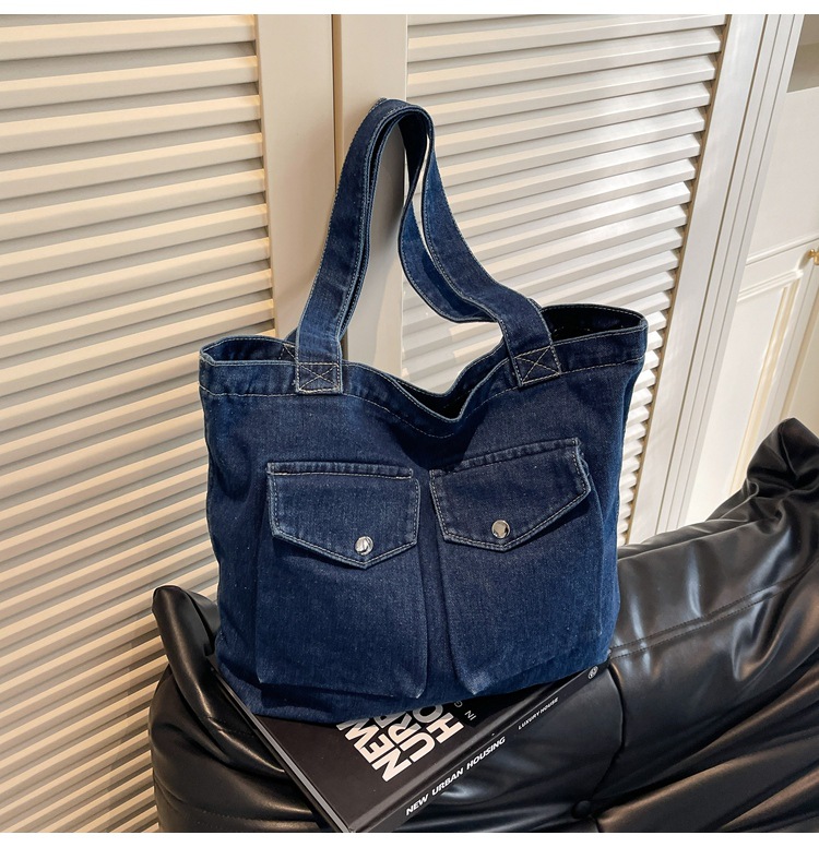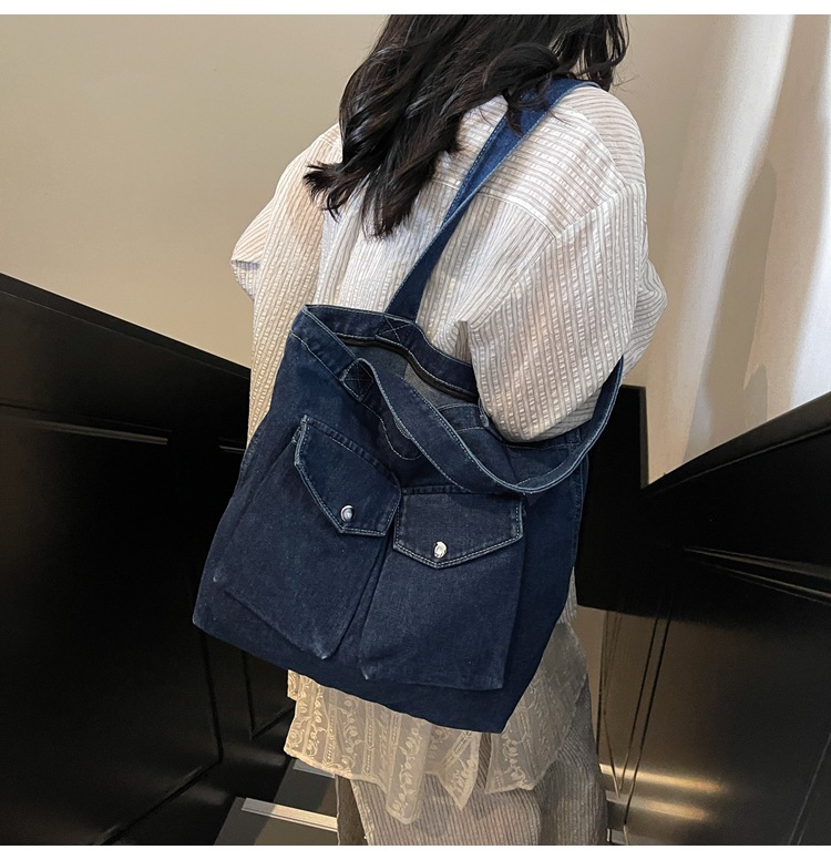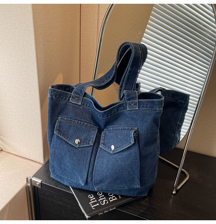 国境を越えた対外貿易大容量復古通勤シングル肩脇下ハンディデニムのトートバッグ2025新型卸売り