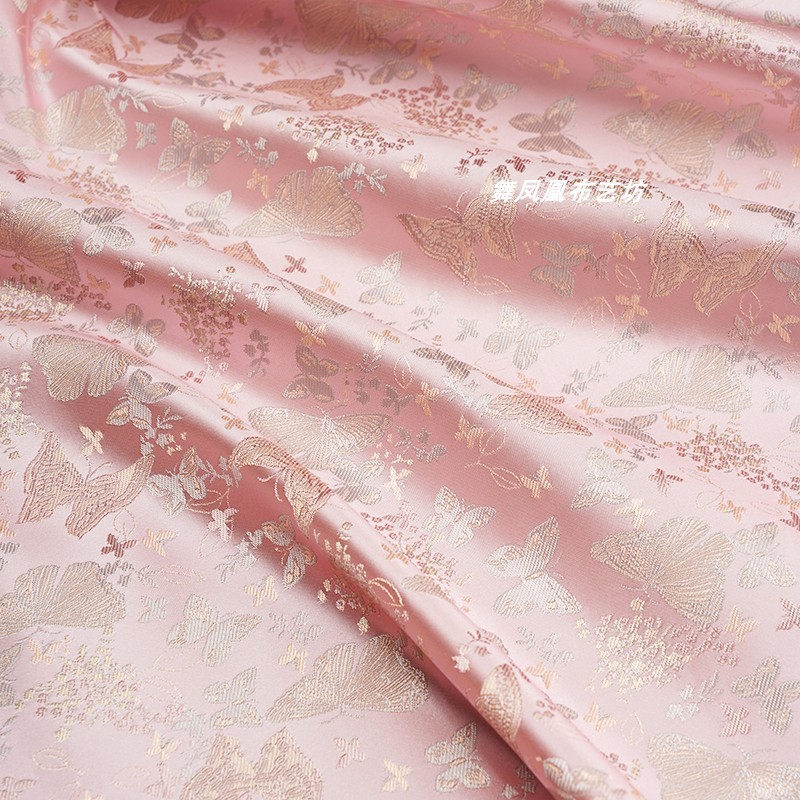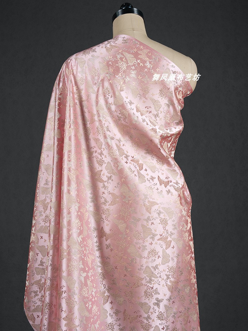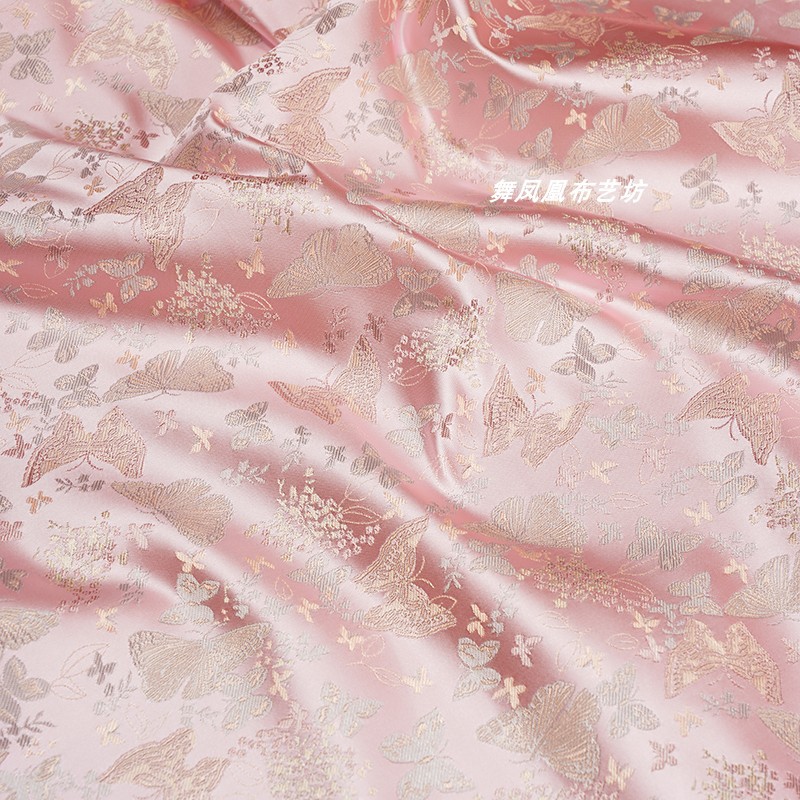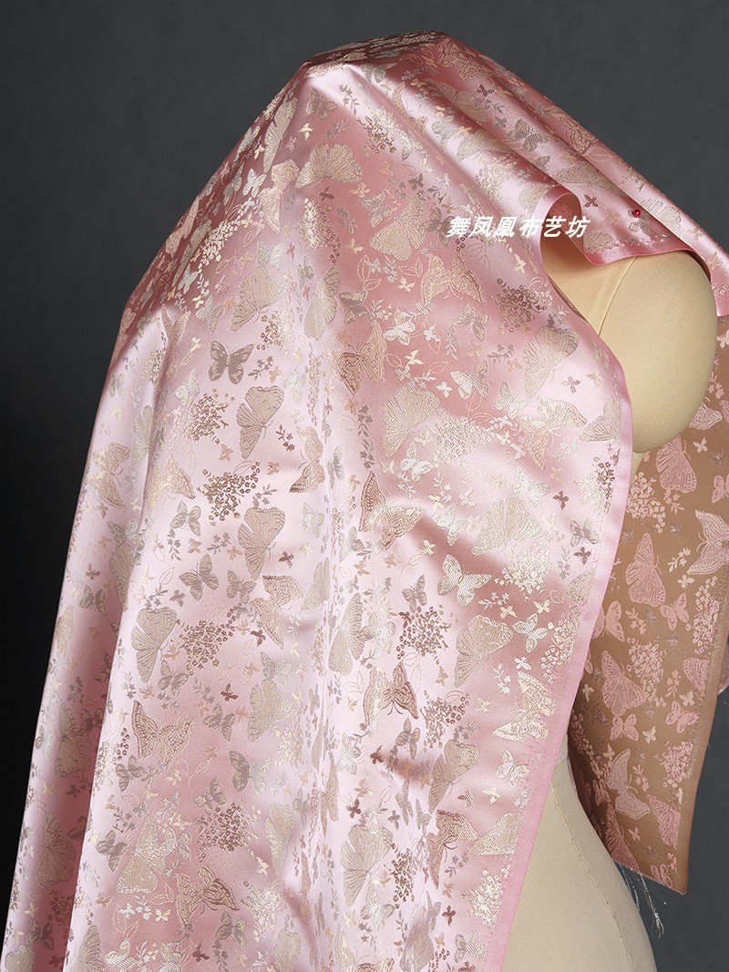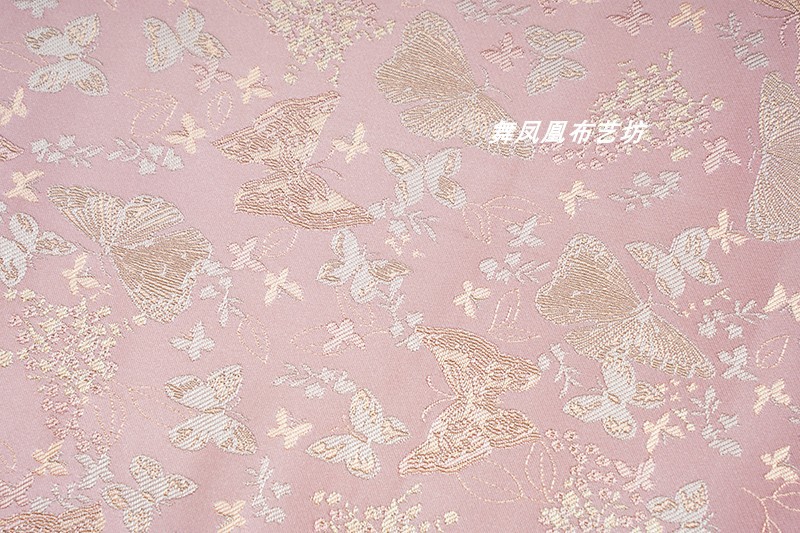 粉色提花蝴蝶织锦缎布料国风汉服外套马甲裙子服装设计师面料透气
