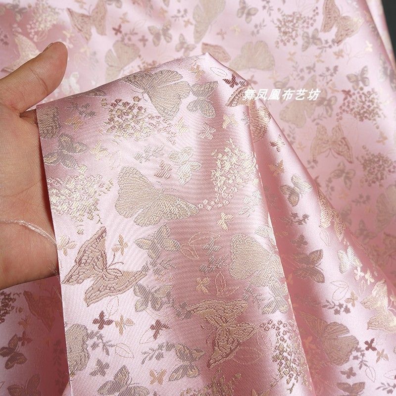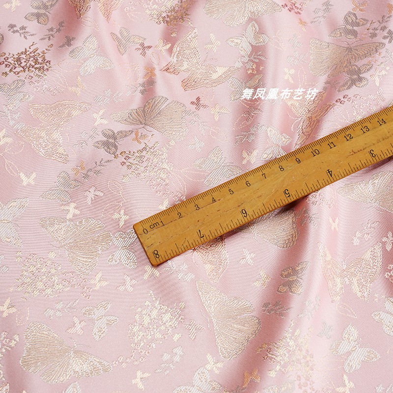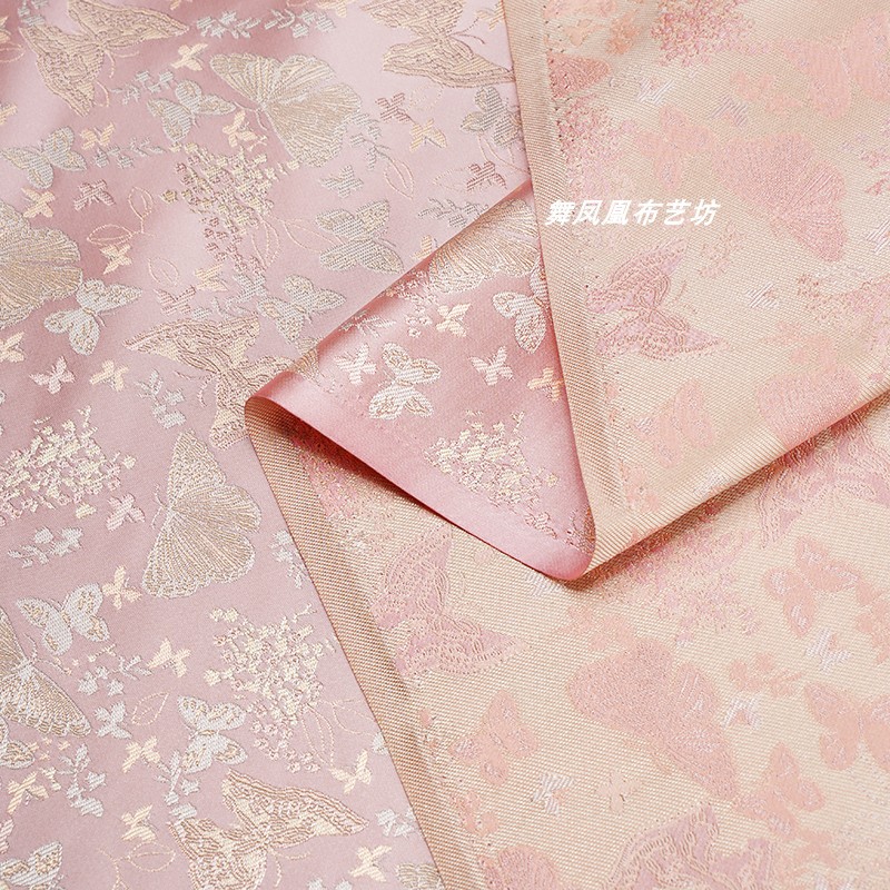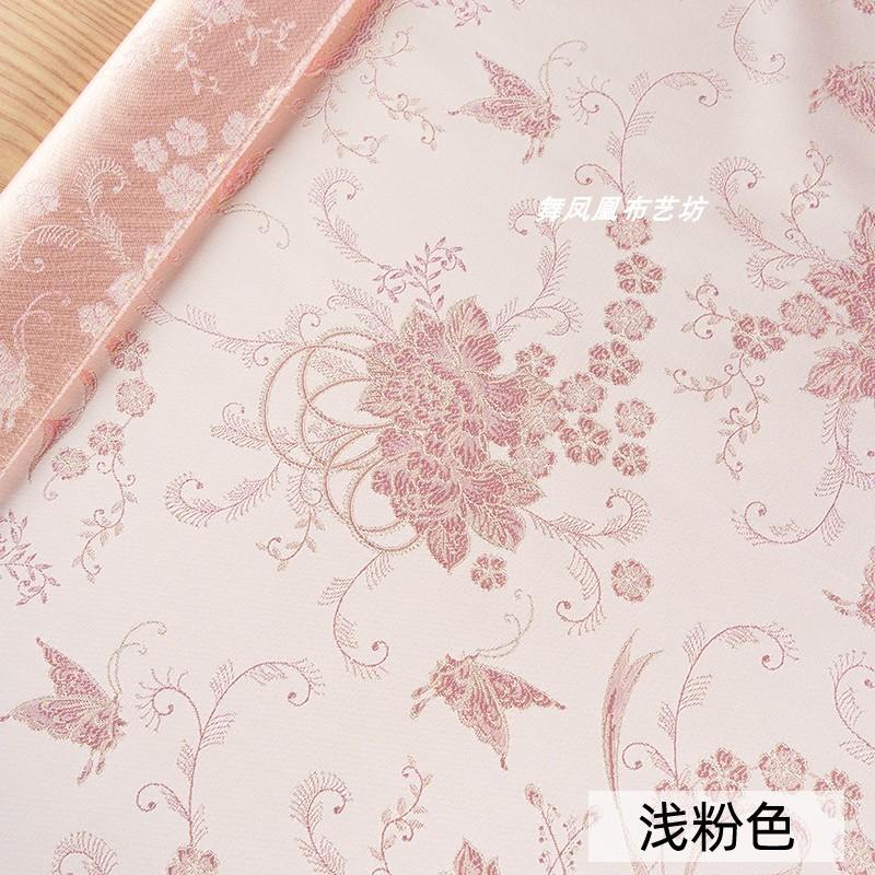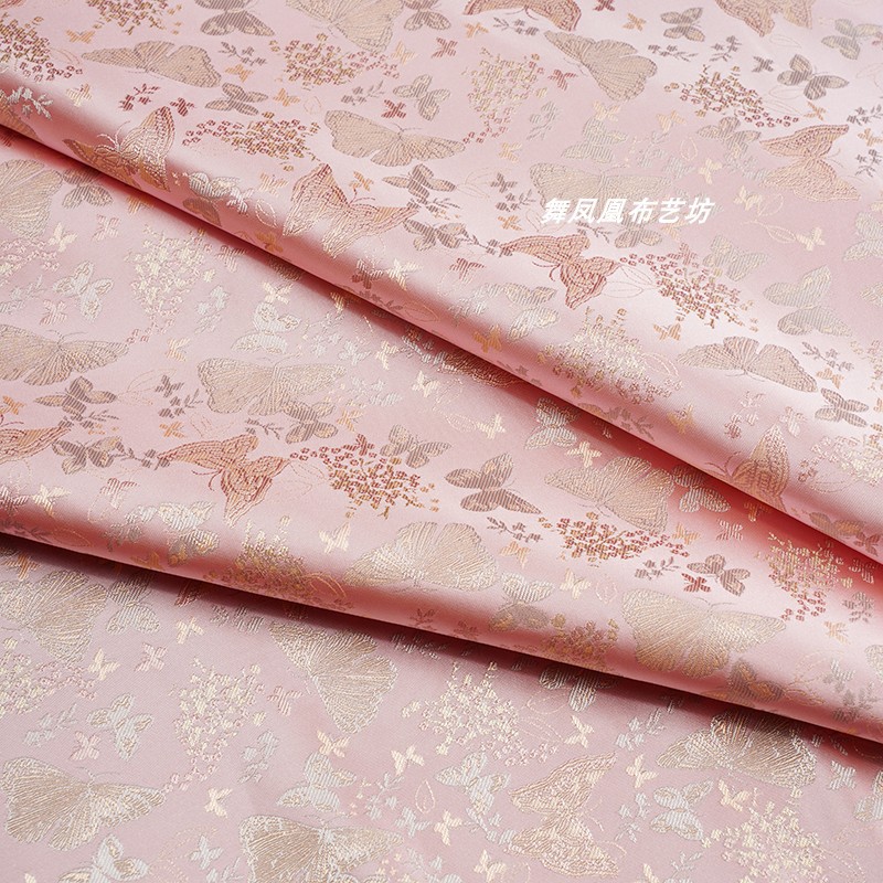 粉色提花蝴蝶织锦缎布料国风汉服外套马甲裙子服装设计师面料透气