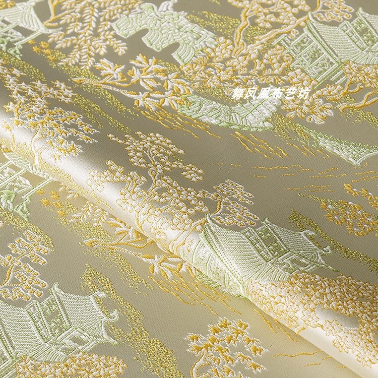 新中国式清明上河図錦織生地庭園景観ジャカード宋錦チャイナドレス馬甲半スカート生地