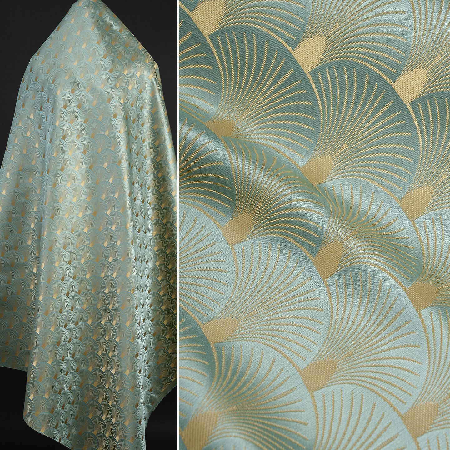 青い扇形イチョウの葉織錦織ジャカード生地キラキラ織金光沢チャイナドレスワンピースコート生地