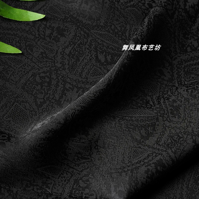 黒のダークパターン模造アセテートジャカード生地中国のレトロなチャイナドレス漢服ドレスワイドレッグパンツ通気性のある生地