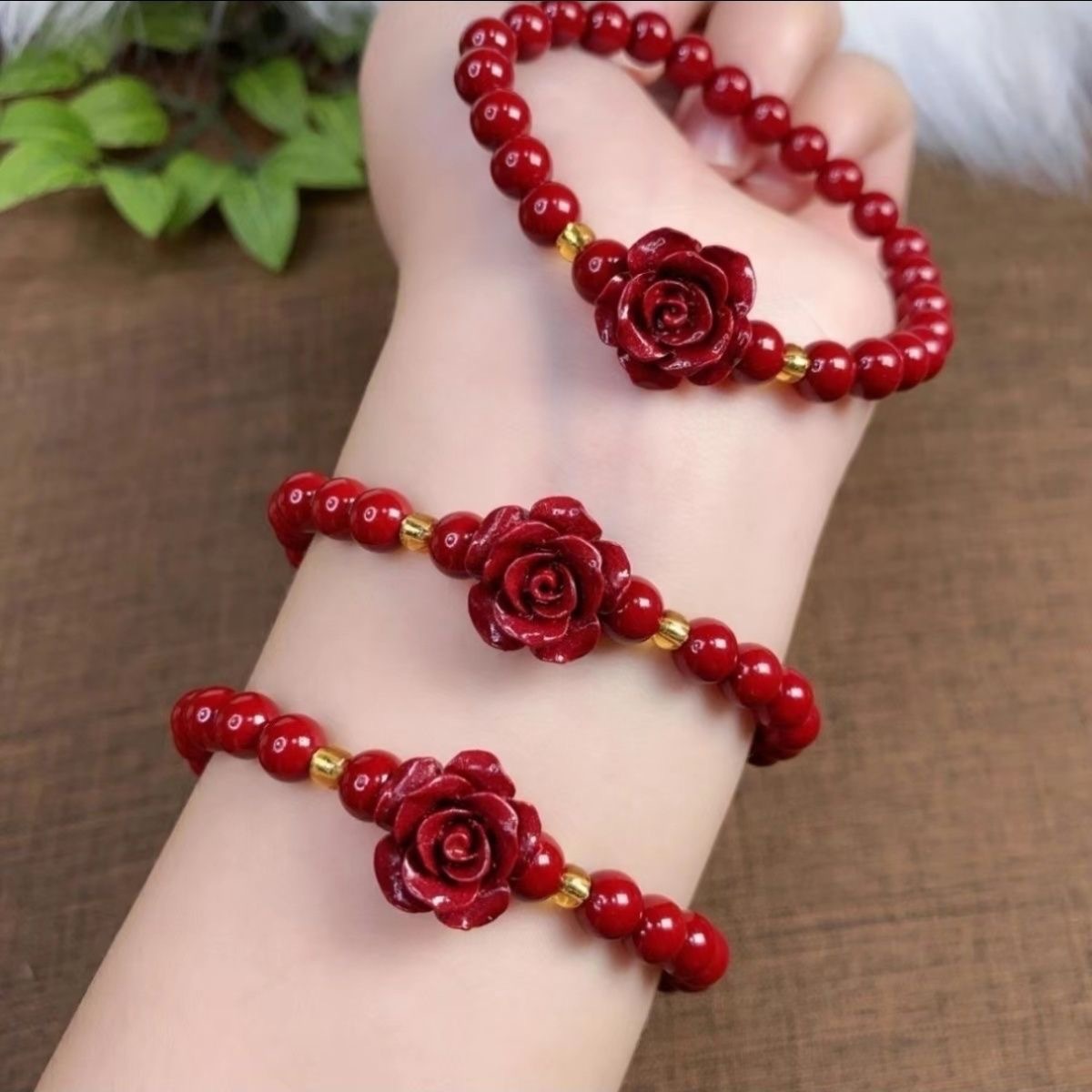 批发爆款朱砂玫瑰花手链仿紫金砂玫瑰花时尚单圈手链送闺蜜老婆