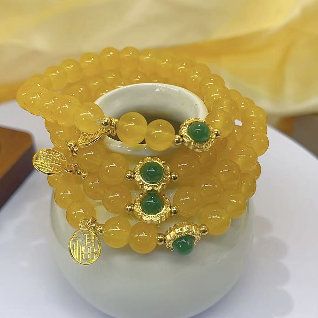 原创黄色仿玛瑙鸡油黄单圈手串女生配饰复古风文艺款福字吊牌新款