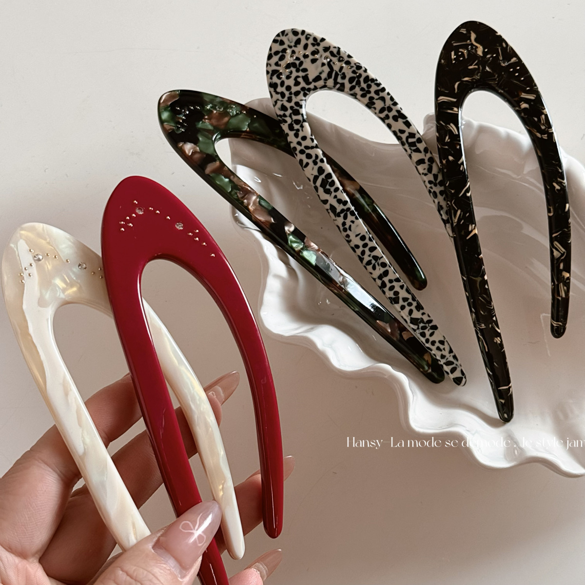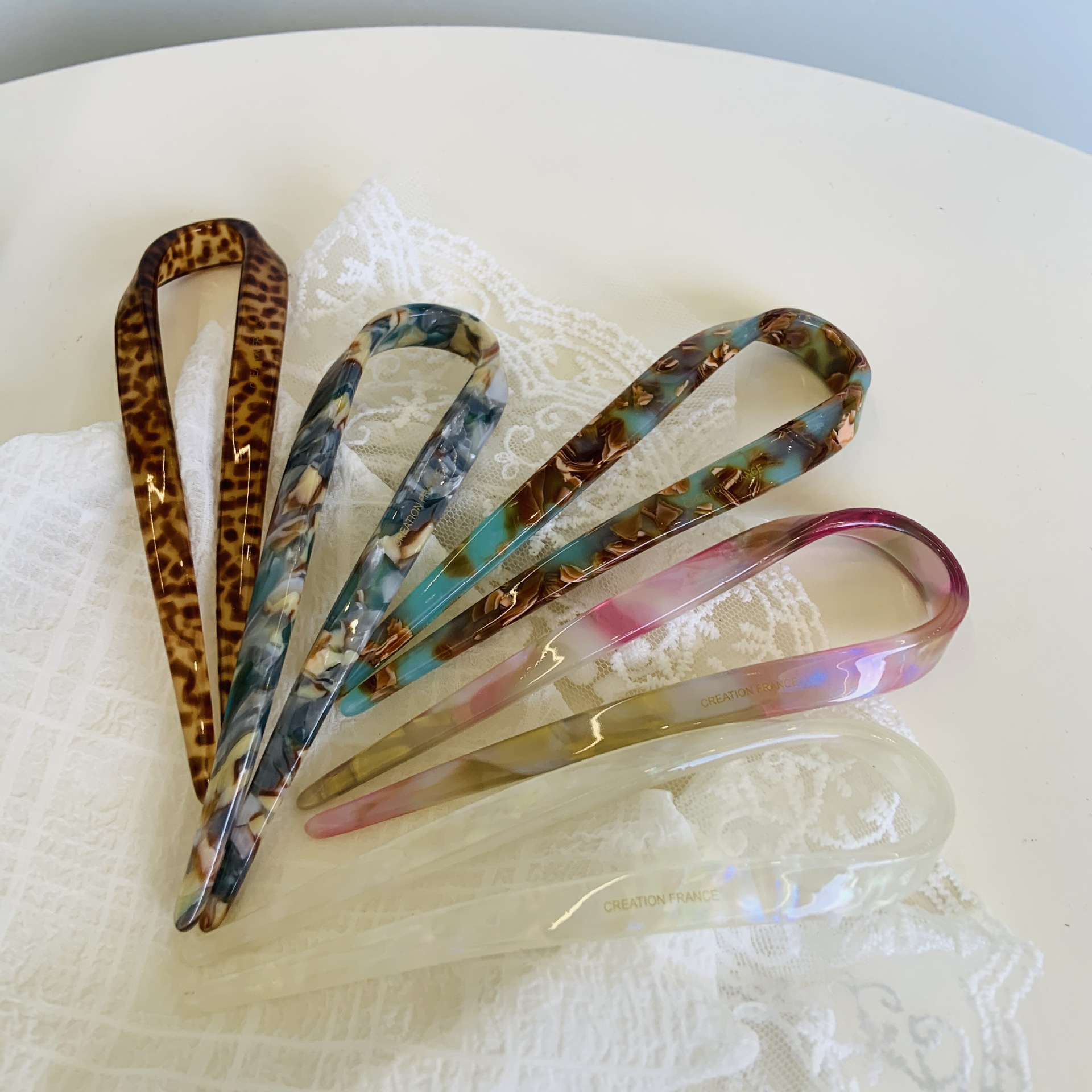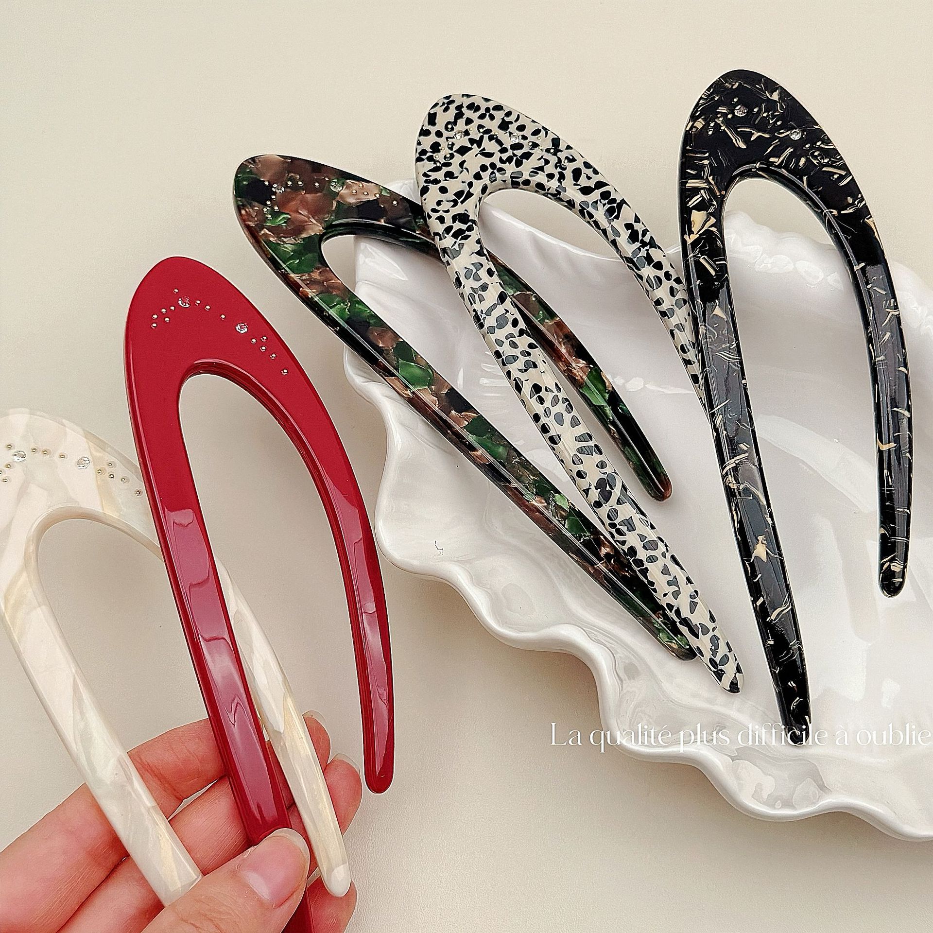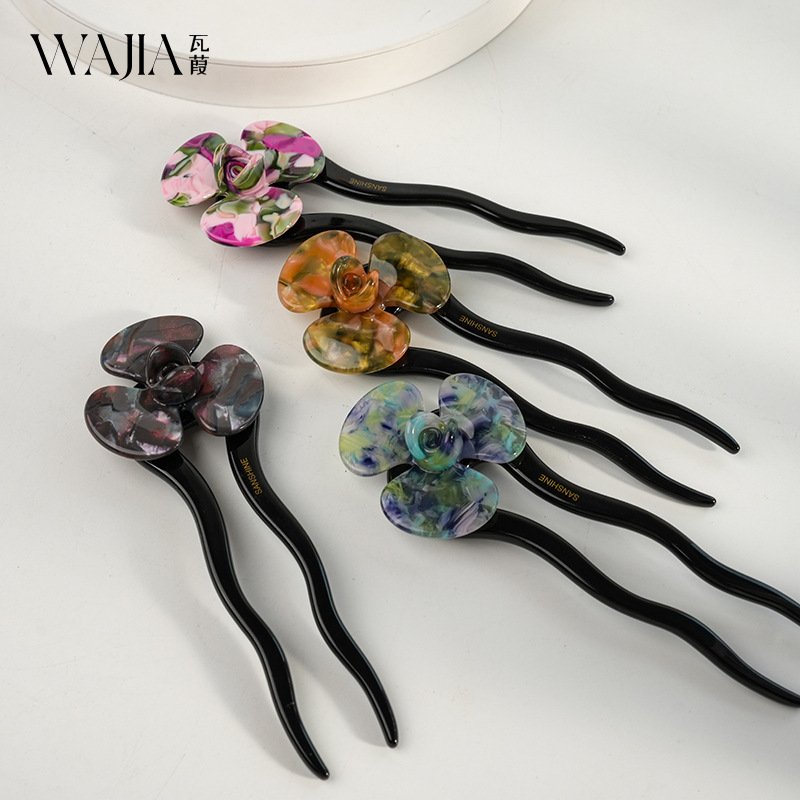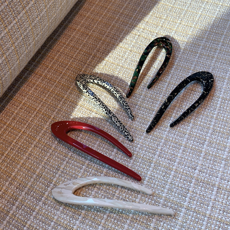 WJiaフランス酢酸花波u字ヘアピン女性シンプルなヘアピン高級感新中国風ヘアピン