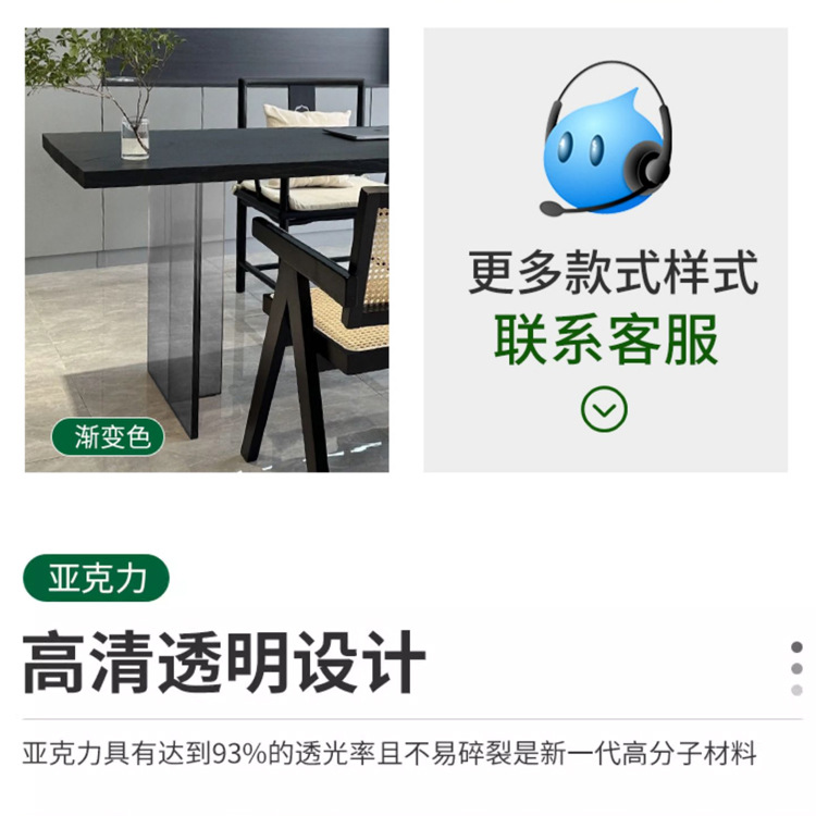 渐变透明弧形亚克力桌腿悬浮岛台吧台腿桌角支架支撑腿半圆餐桌脚