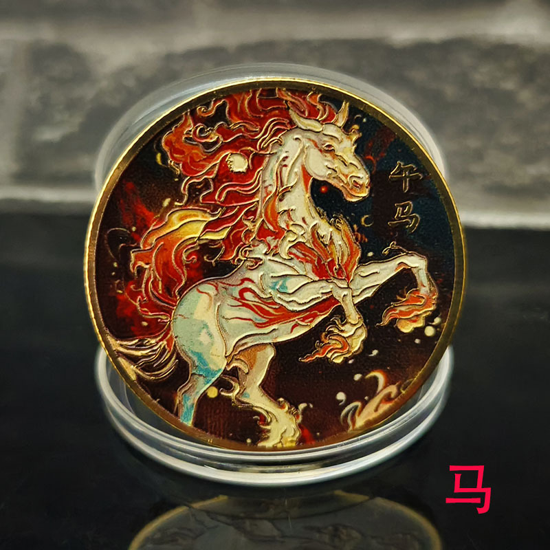 カラー十二生肖記念貨幣12生肖彫刻彩印記念章観光地区博物館生肖プレゼント